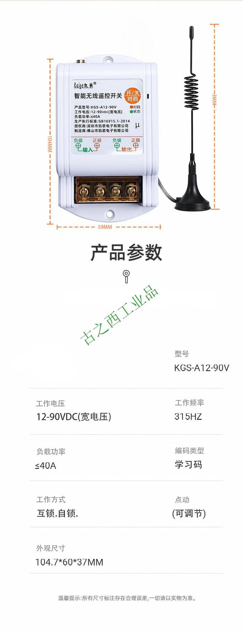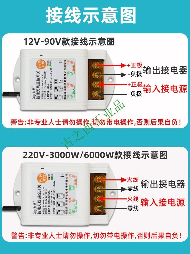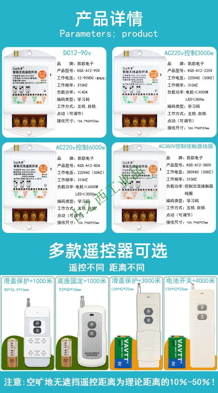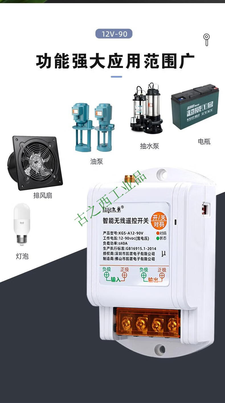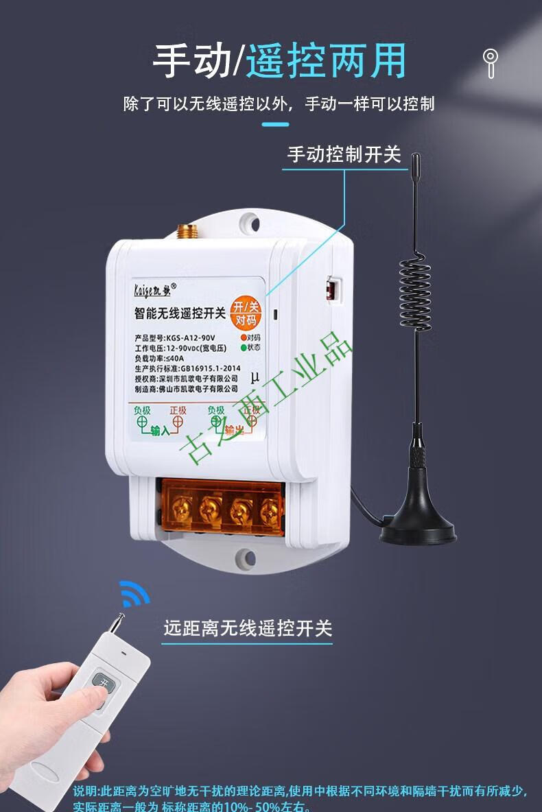 DC 12v wireless remote control switch 24v36v water pump car remote control power supply remote controller battery car 12-90V+ 1 remote control 0-1000 meters