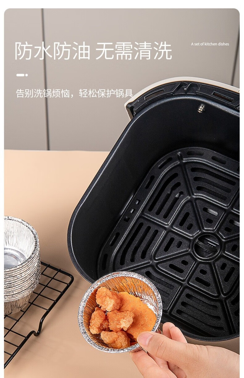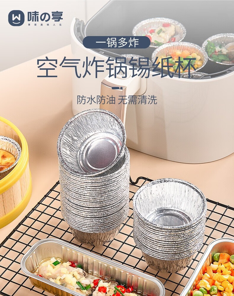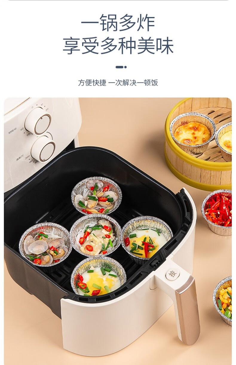 Special paper tinfoil bowl for flavor air fryer oven household egg tart tray aluminum foil box paper plate small disposable tinfoil cup 40 pieces - small round one pot for multiple frying