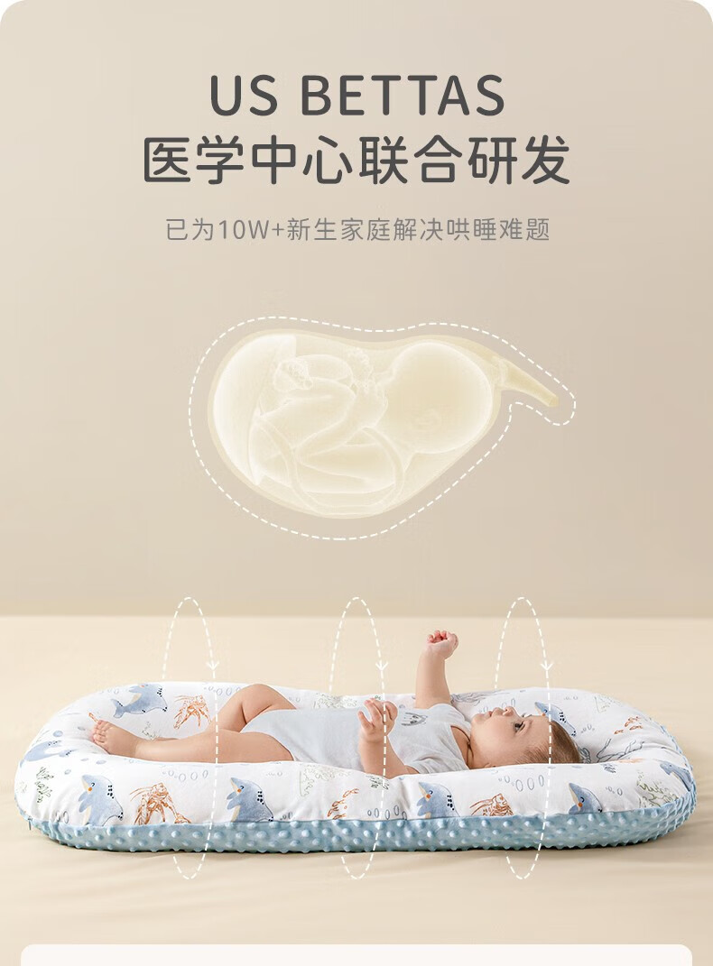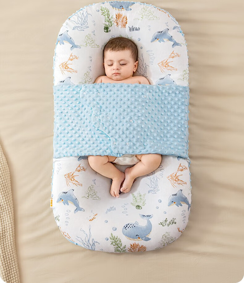 Betis crib mid-bed anti-jump baby bed removable and portable newborn bed removable and washable sleep aid 0-3 years old Cute rabbit travels shaping + slope pillow