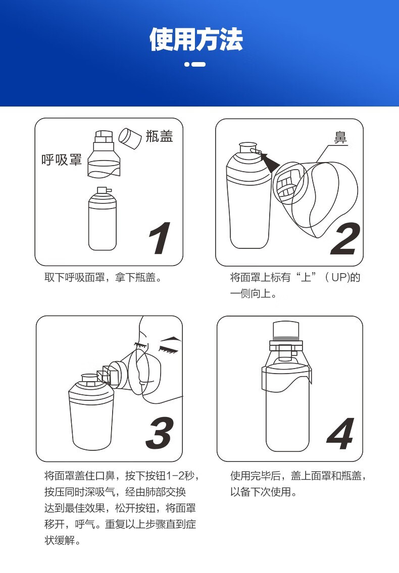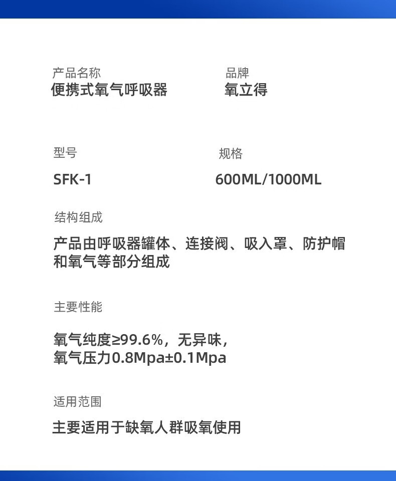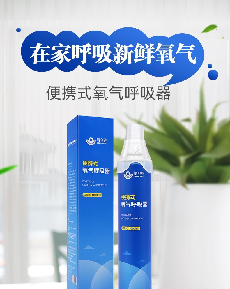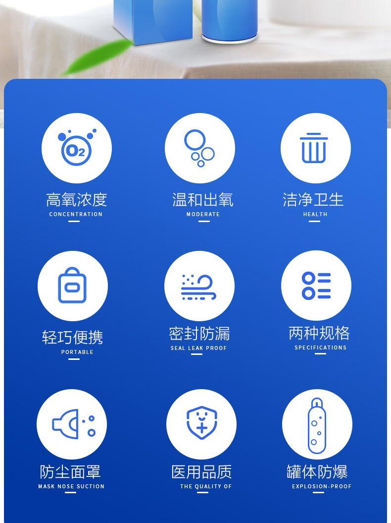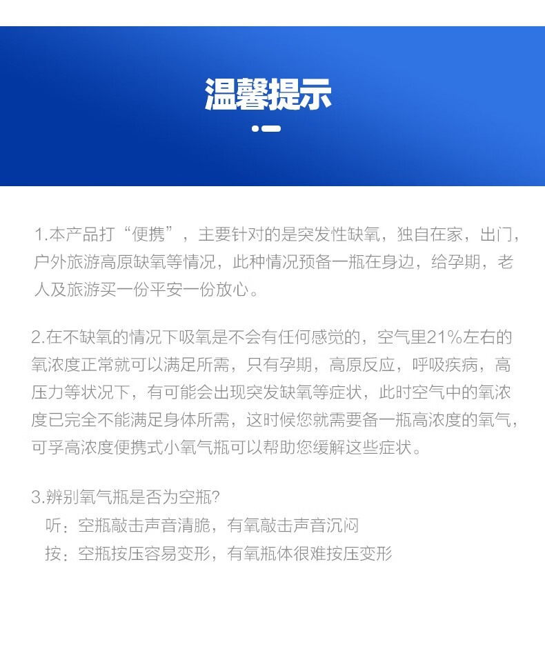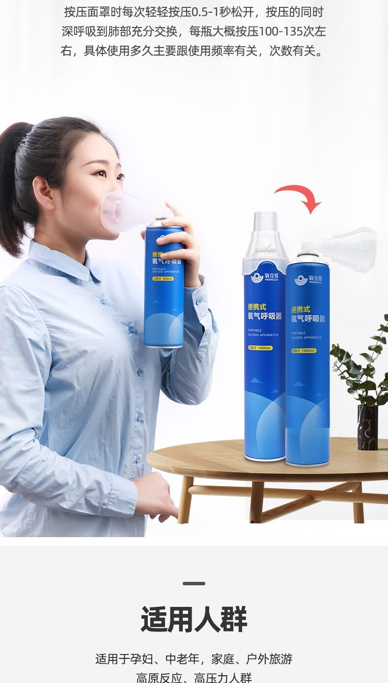 Oxygen bottle portable mask type 1000ml for medical household use for pregnant women and the elderly plateau travel three bottles of 1000ml (color box)