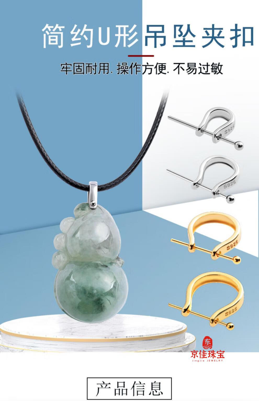 Jingjia Fat Donglai same style buckle 18k gold buckle 925U type pendant jade buckle plated I8K gold buckle jade Buddha amulet extra small size - white gold
