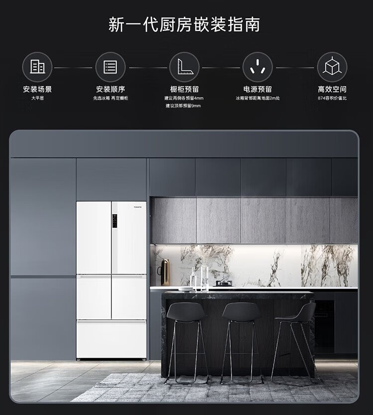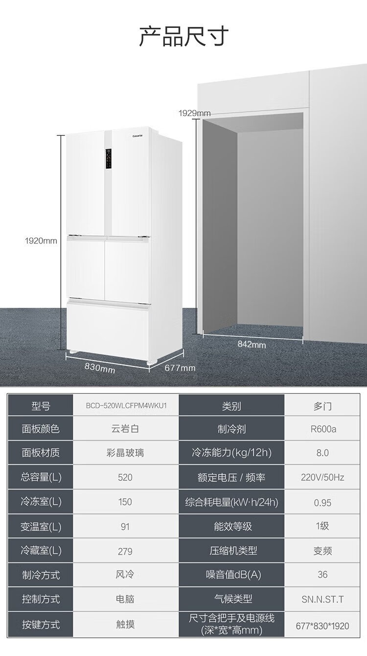 Casarte Casarte refrigerator 520L zero-distance embedded multi-door household refrigerator large capacity first-class energy efficiency front cooling automatic ice making 520