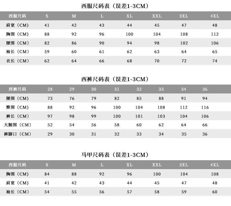 China (cm) 165 / 88-90 170 / 96-98 175 / 108-110 180 / 118-122 185 / 126-130