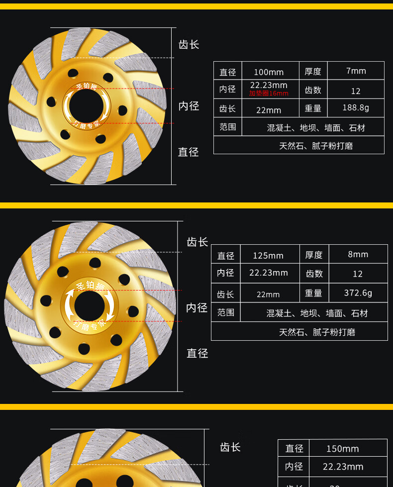 St. Platinum diamond grinding disc angle grinder cement floor wall concrete stone grinding wheel disc polishing machine artifact bowl grinding disc thickened large nugget 80mm 3 get 1 get 5 get 2