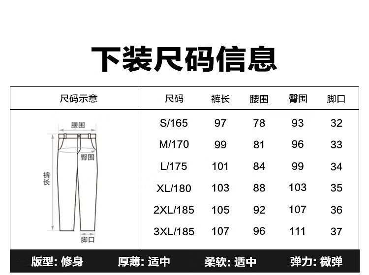 Outseam (cm) 99 cm 101.5 cm 104 cm 106.5 cm 109 cm