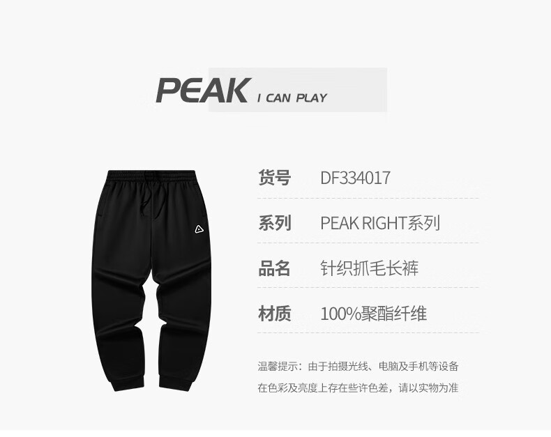 Peak fleece sweatpants men's new loose and comfortable knitted leggings casual sweatpants student warm trousers black L