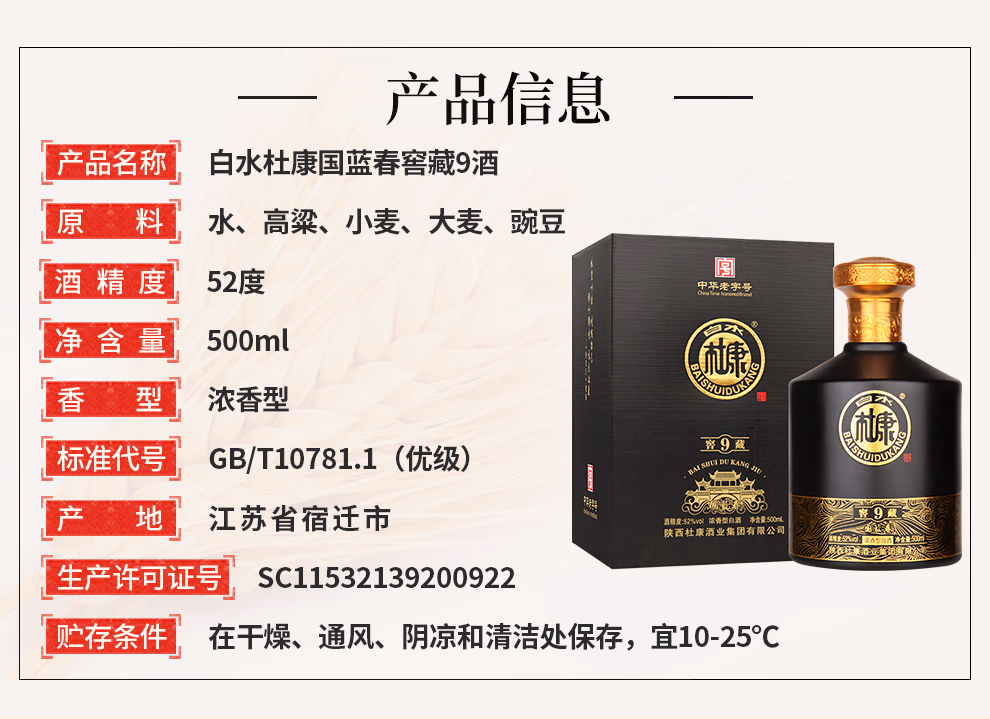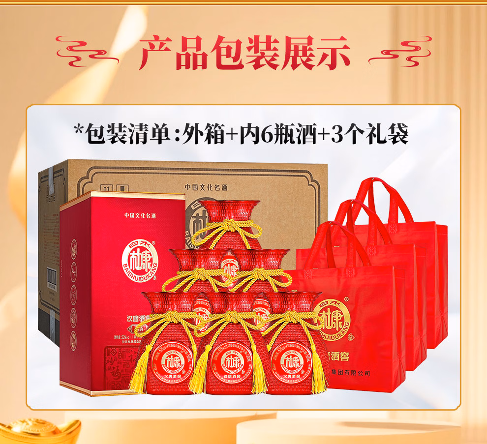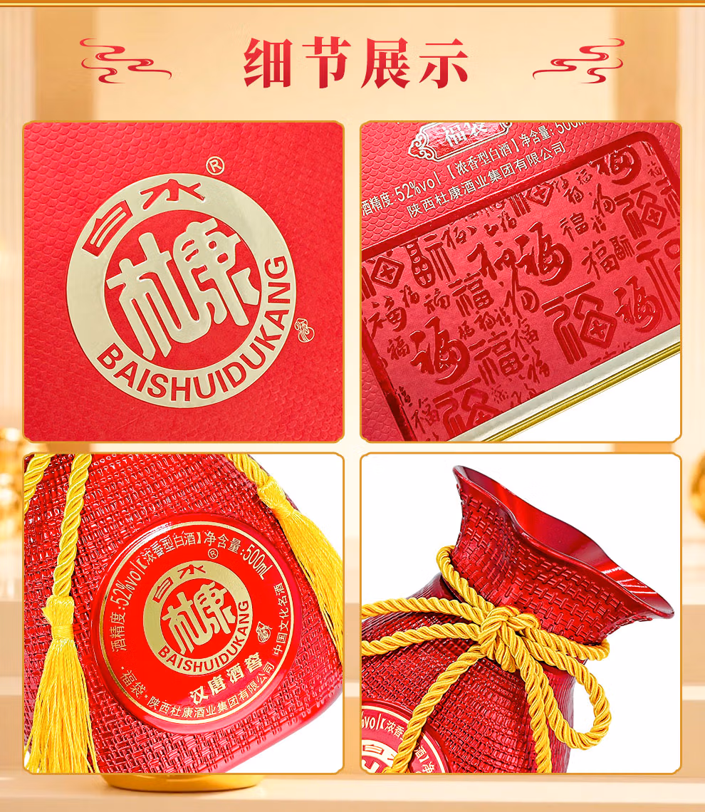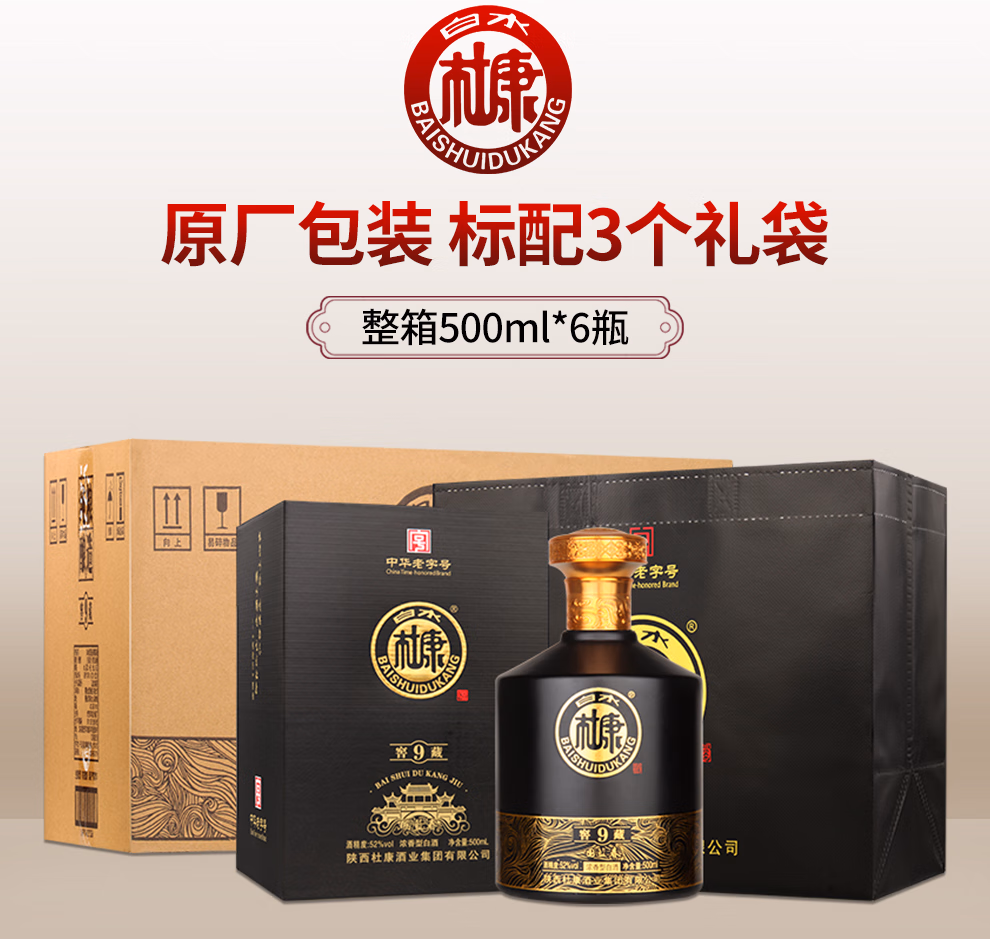 Baishui Dukang Baijiu strong-flavor solid grain wine self-drinking grain wine cost-effective holiday gift wine 52 degrees 500mL 6 bottles cellar 9