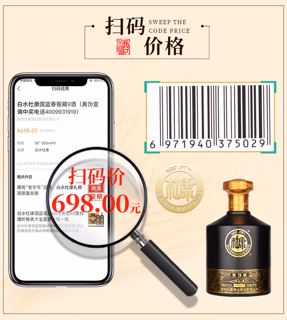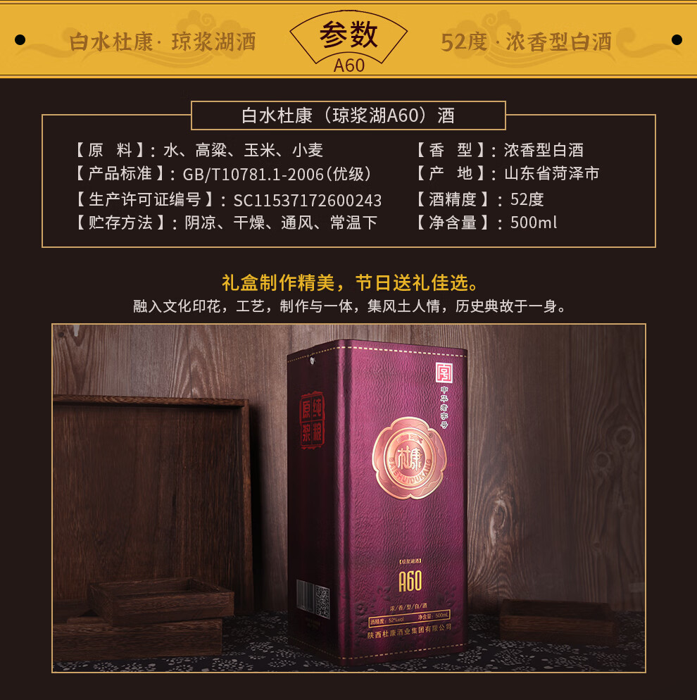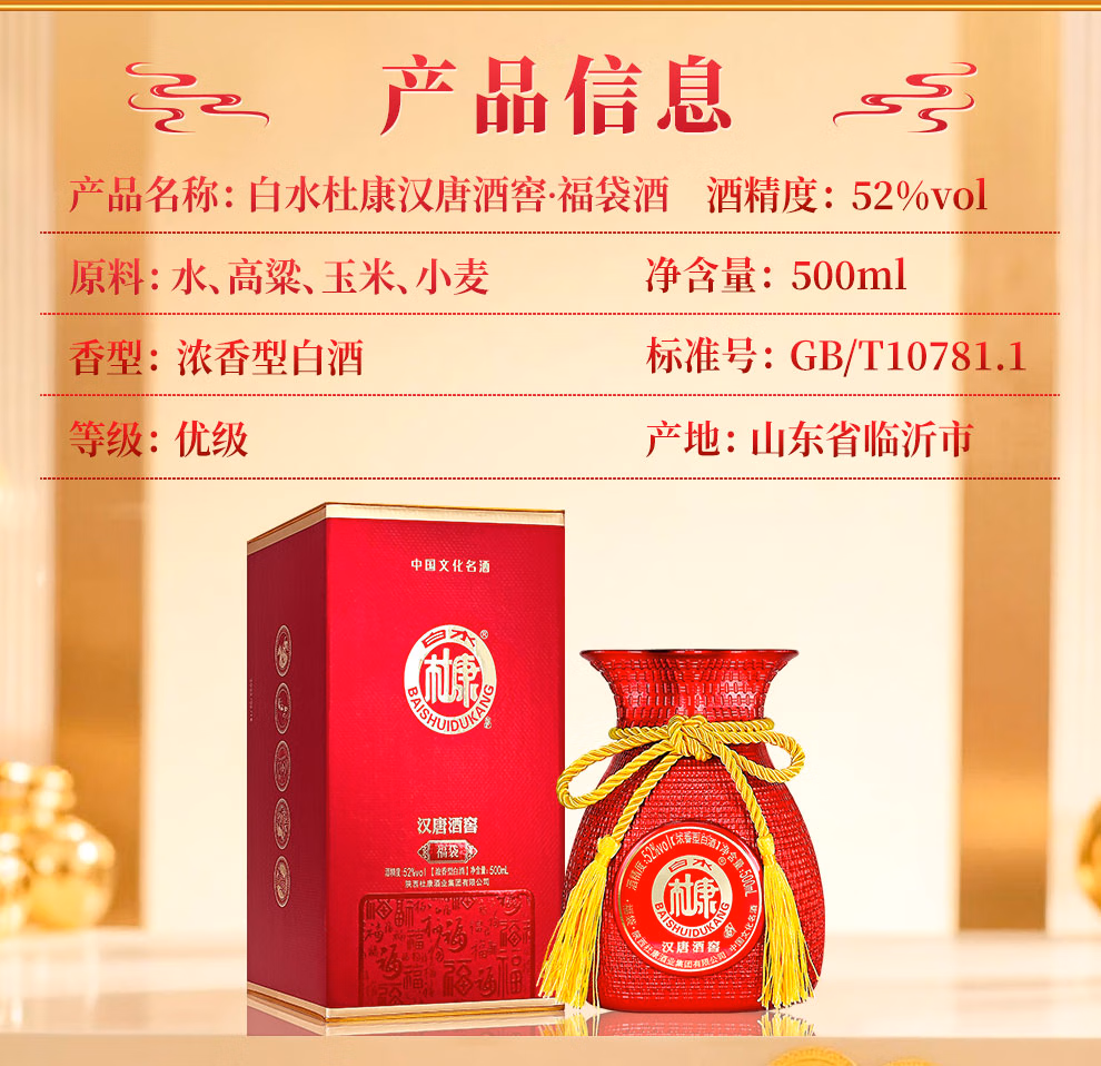 Baishui Dukang Baijiu strong-flavor solid grain wine self-drinking grain wine cost-effective holiday gift wine 52 degrees 500mL 6 bottles cellar 9