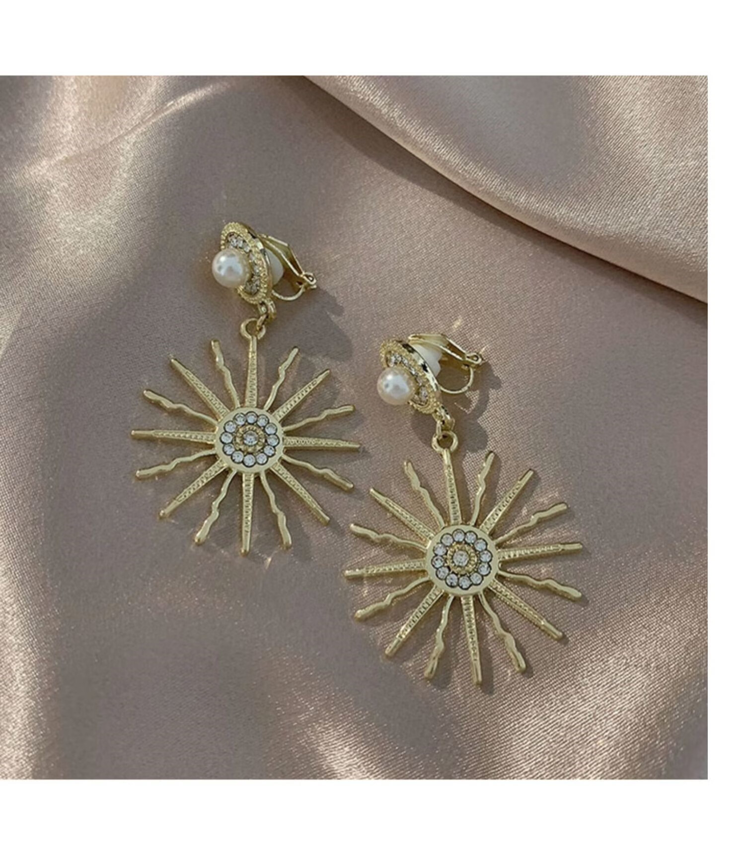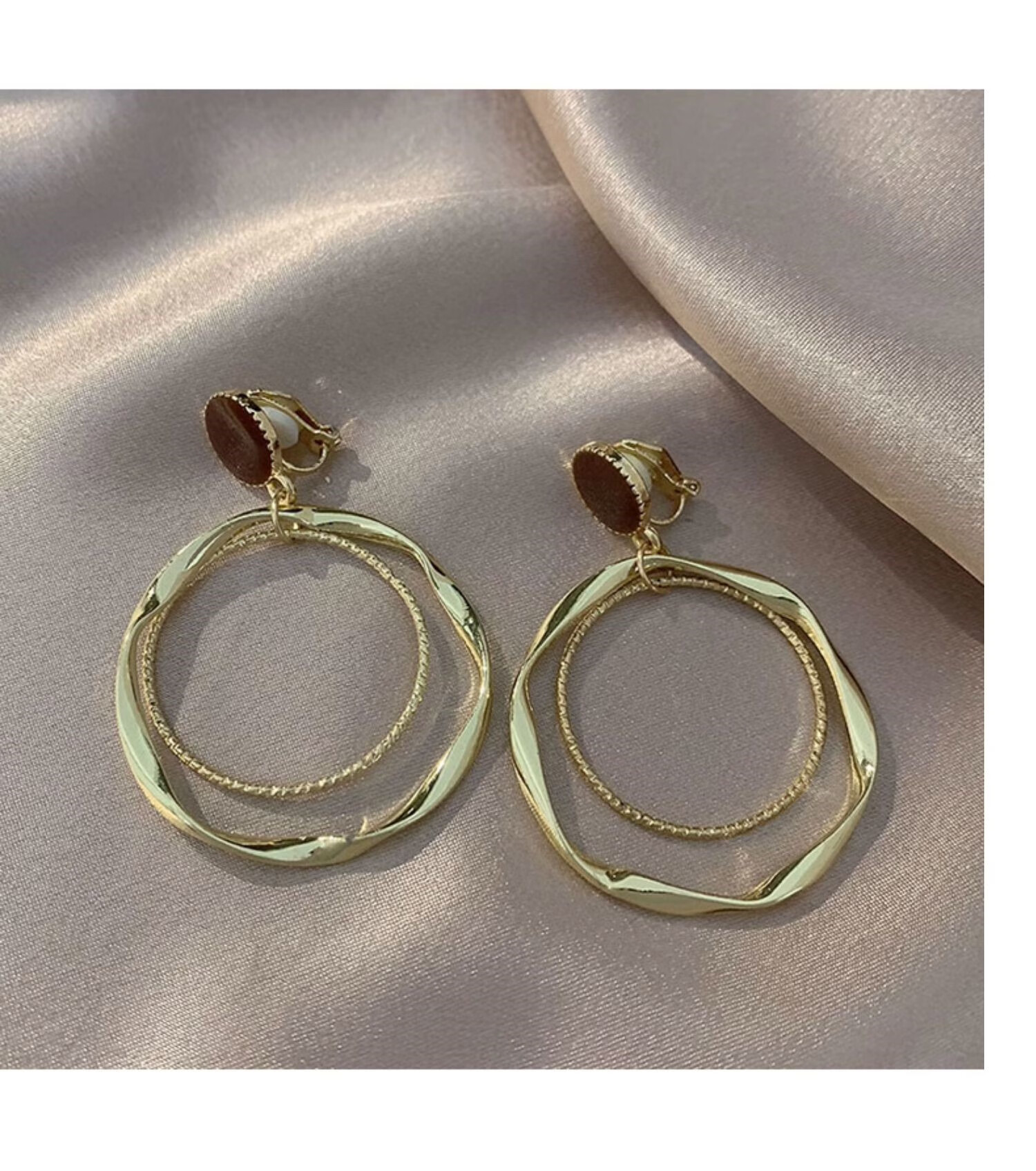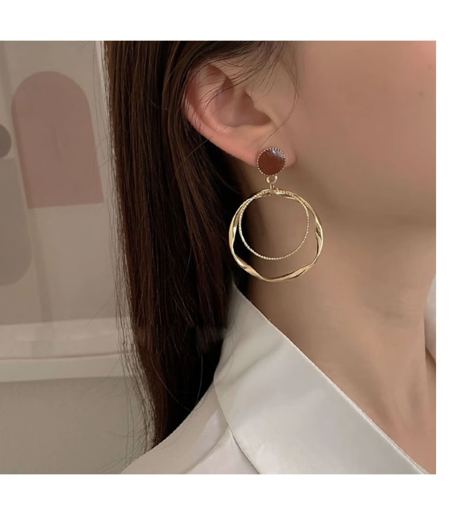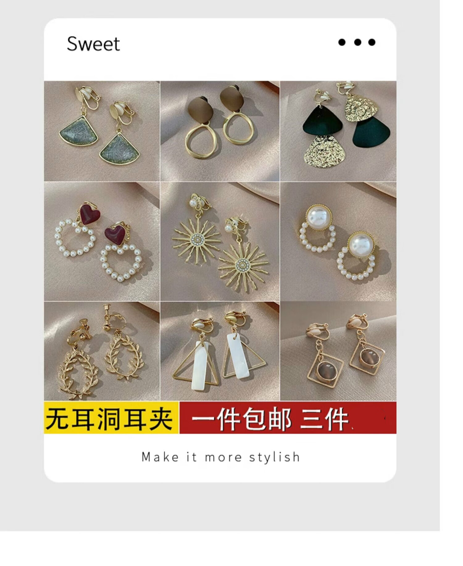 Qindu feeling light luxury ear clip without piercing female niche design internet celebrity temperament earrings retro French pearl earrings summer pj 05 brown large hoop ear clip