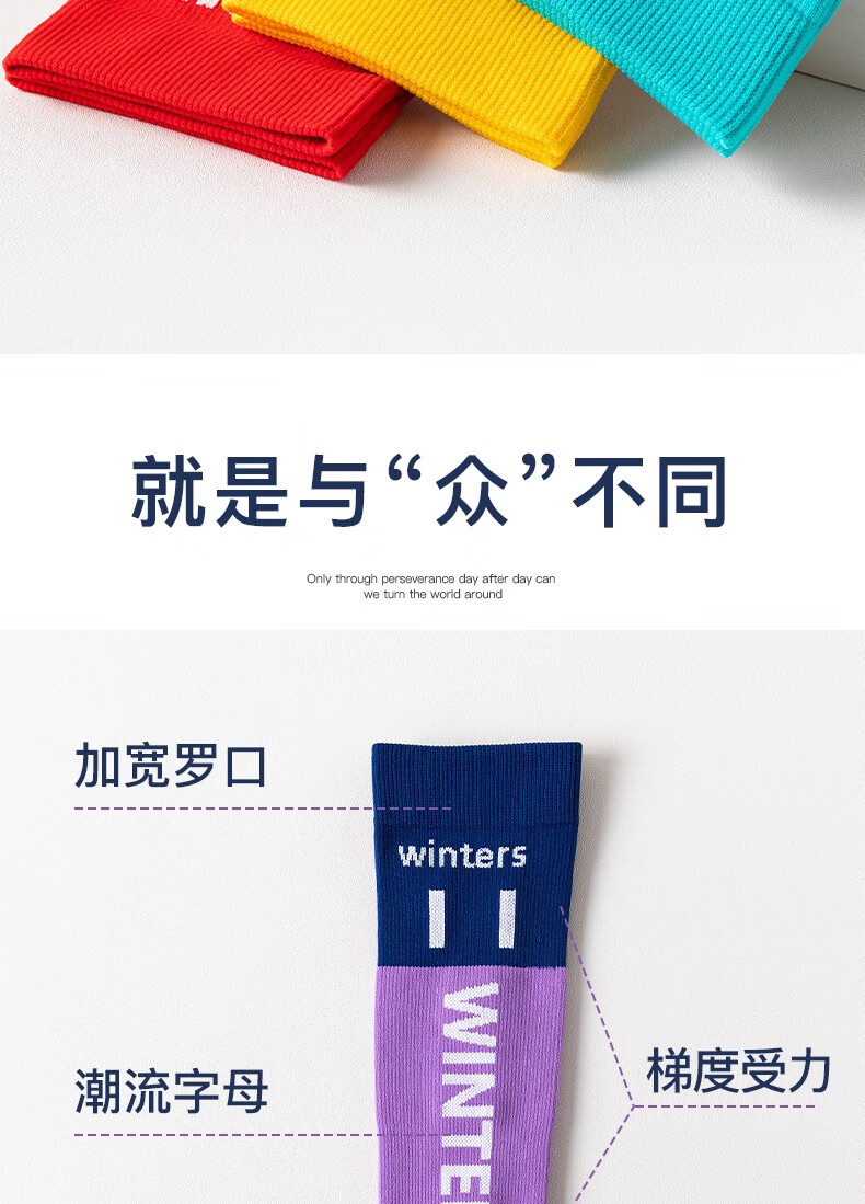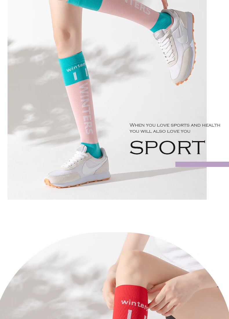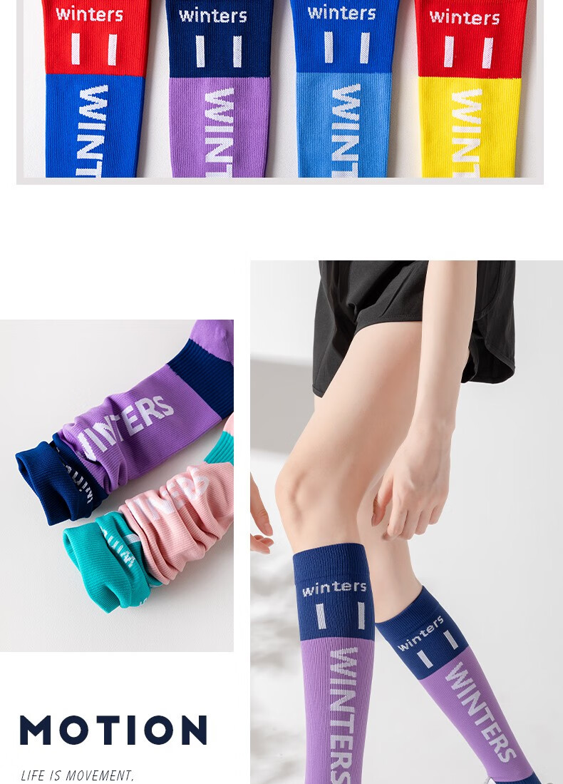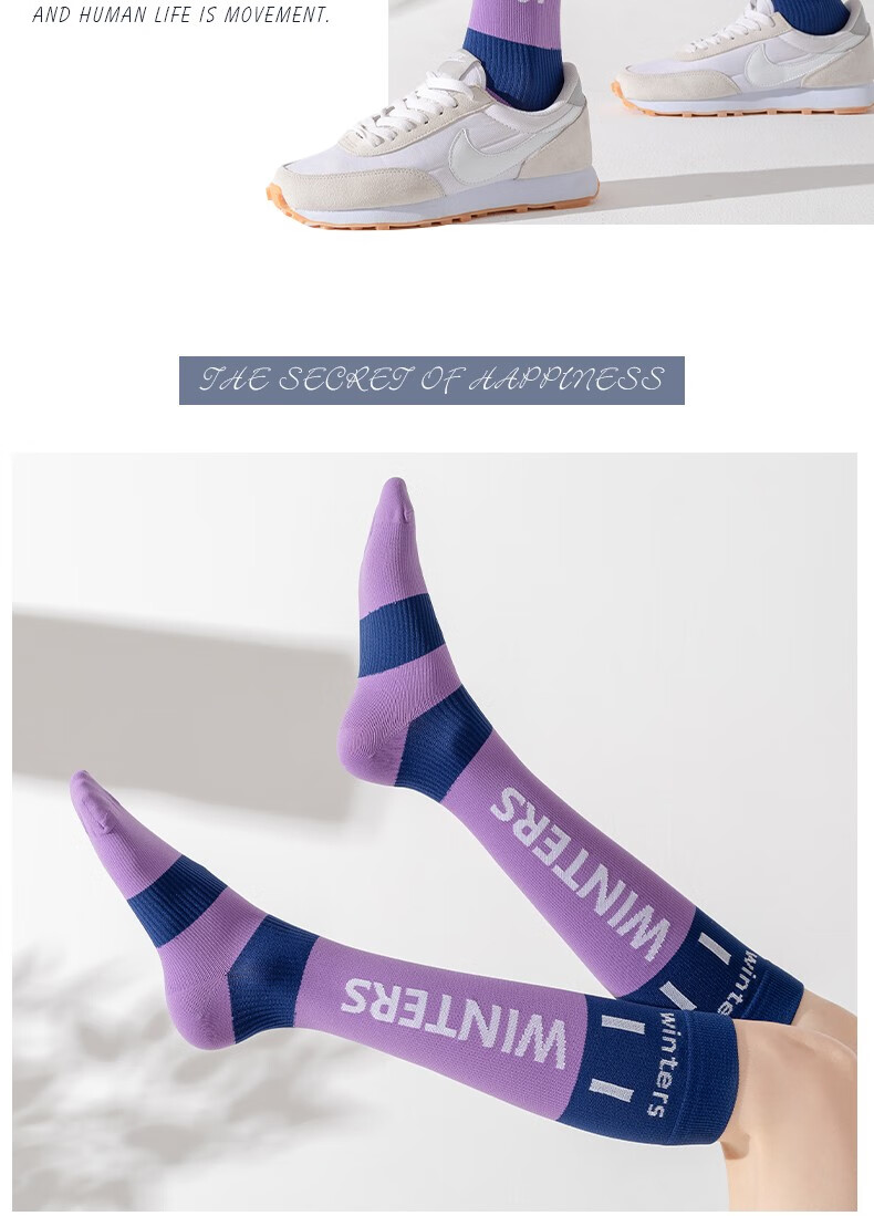 Lemon Jinji Sports Socks Women's Mid-calf Socks Running Fitness Stockings Yoga Calf Socks Skipping Rope Socks Letter Contrast Color Blue and Red 1 Pair One Size 35-10