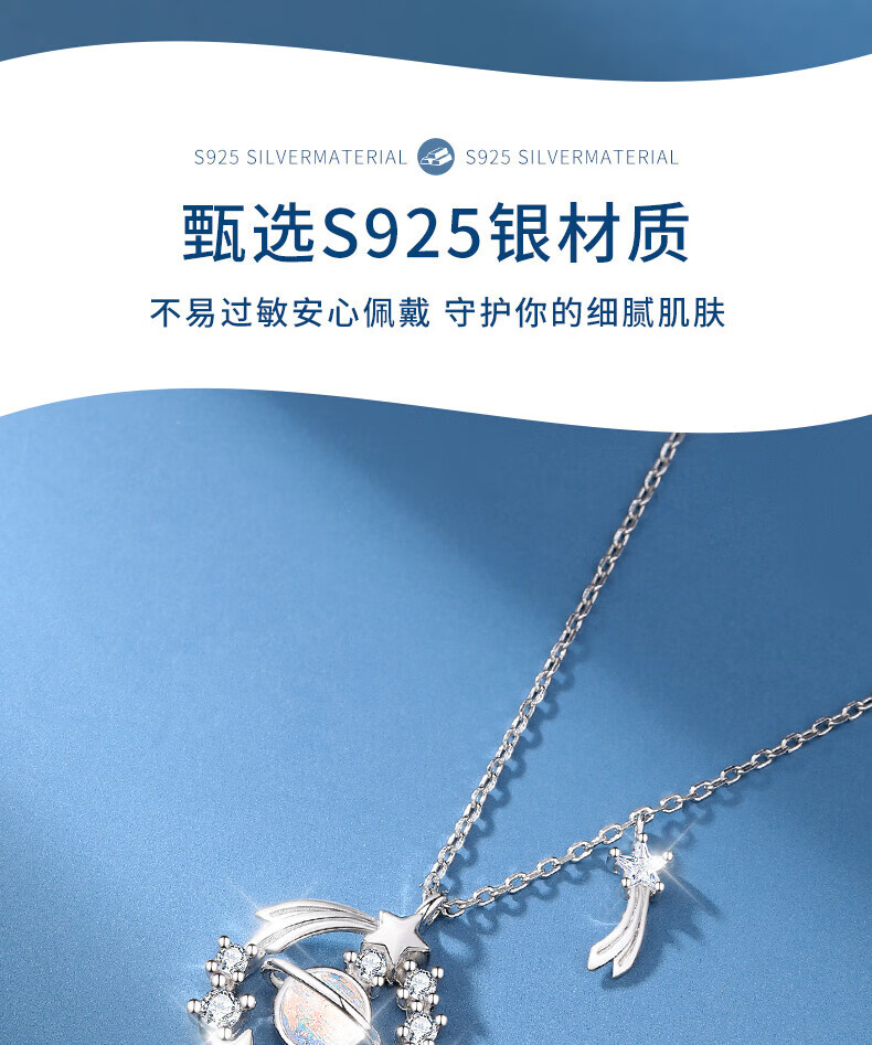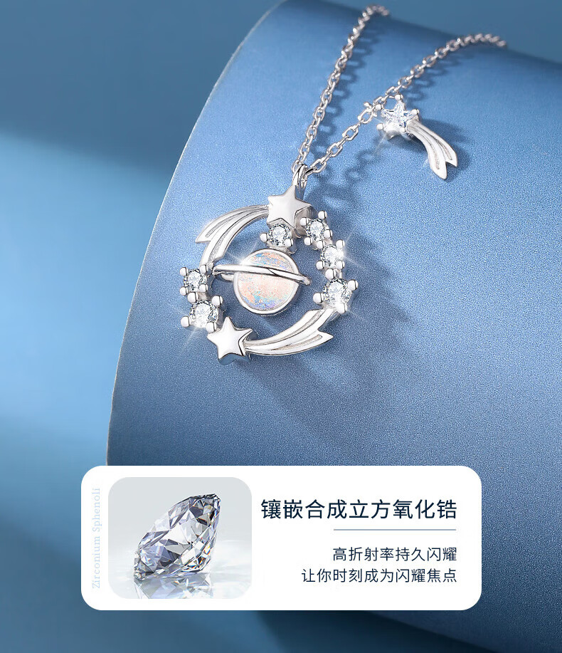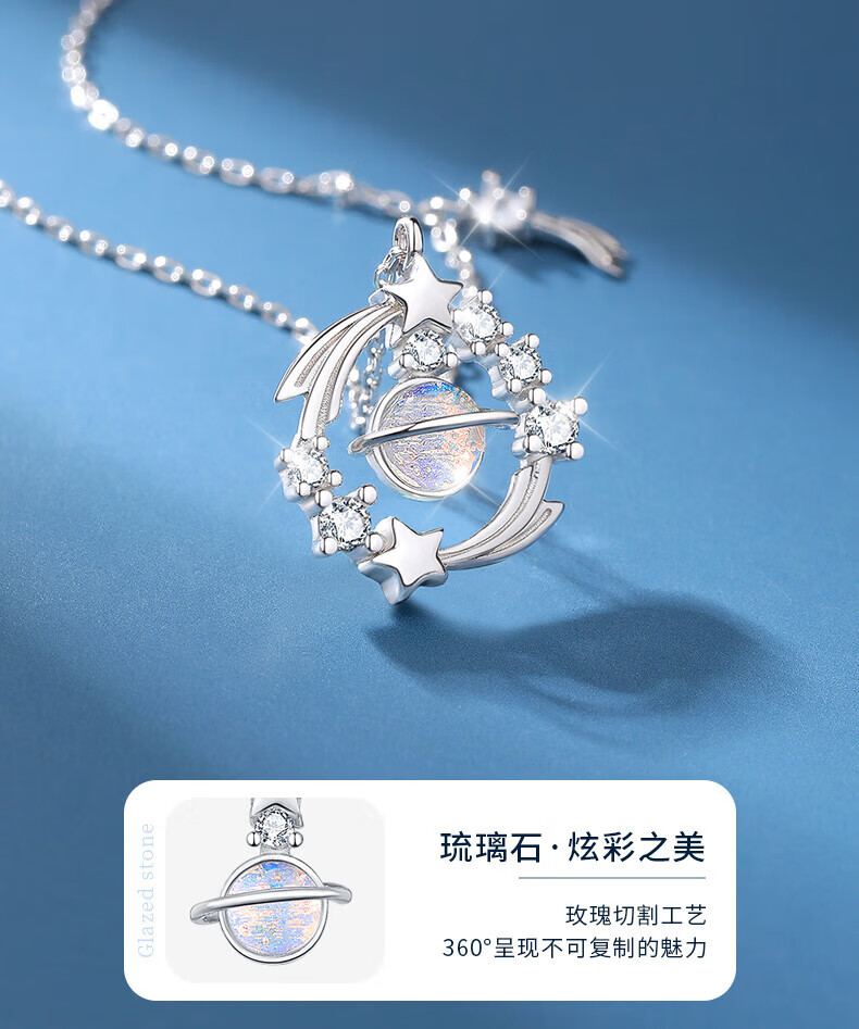 VIGG Wish Meteor Silver Necklace Women's Pendant Valentine's Day Birthday Gift Confession Anniversary Gift for Girlfriend and Wife Jewelry Wish Meteor Necklace Jingcang Next Day Delivery