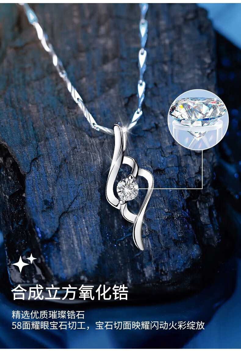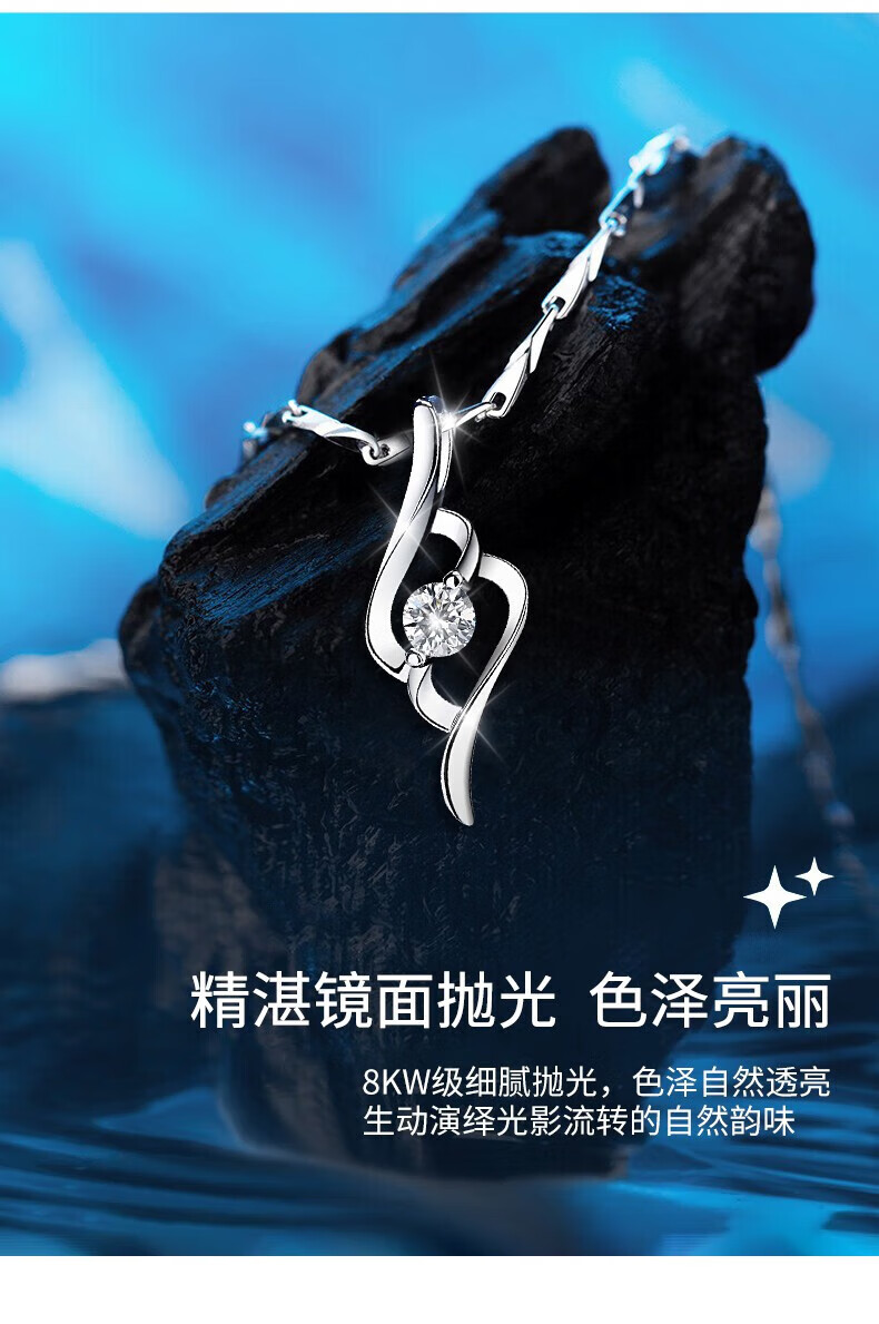 Chow Tai Fook Platinum Necklace Ladies Pendant Girls Gift for Girlfriend and Wife Birthday Fashion Accessories 0 Platinum Beautiful Necklace + Rose Gift Box
