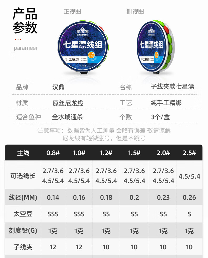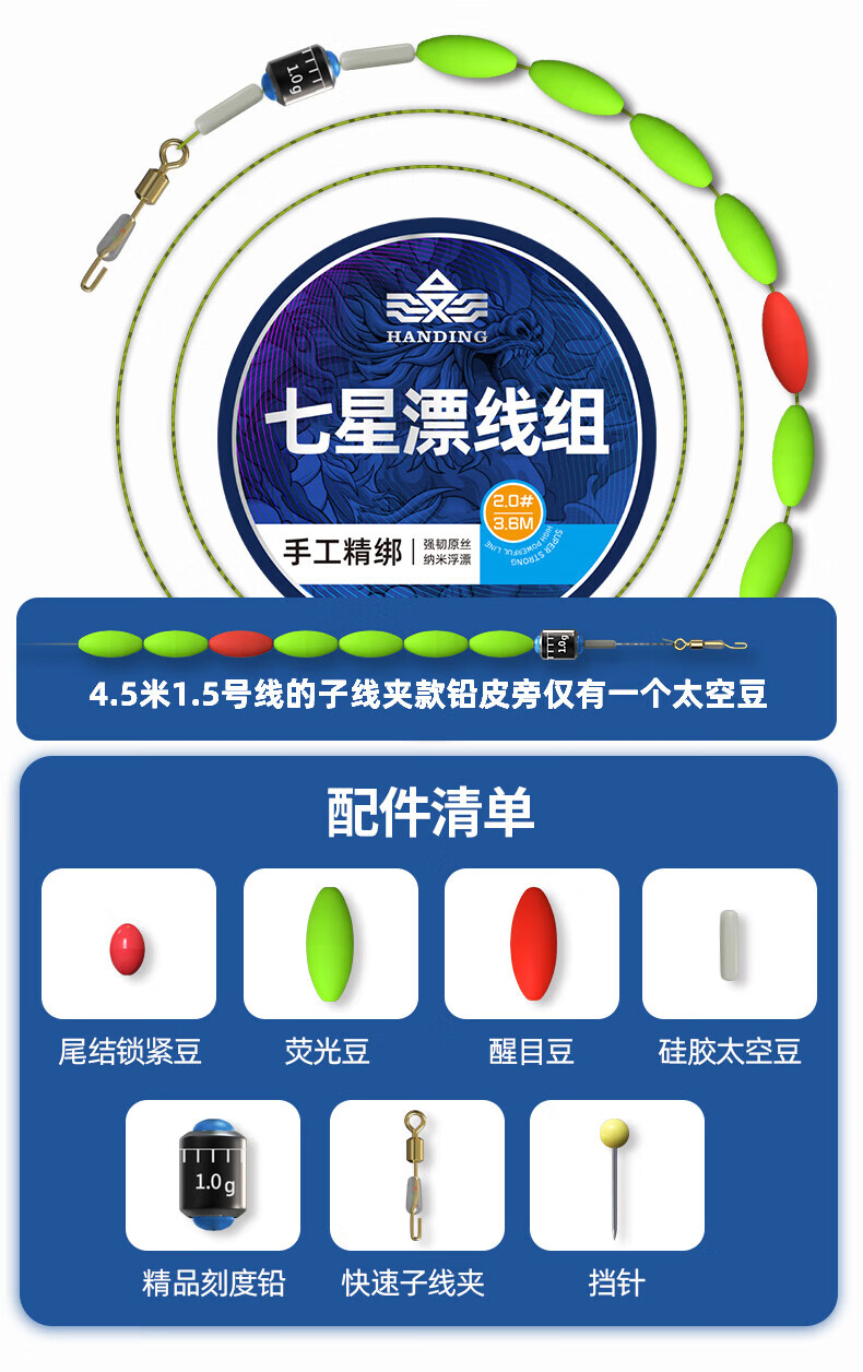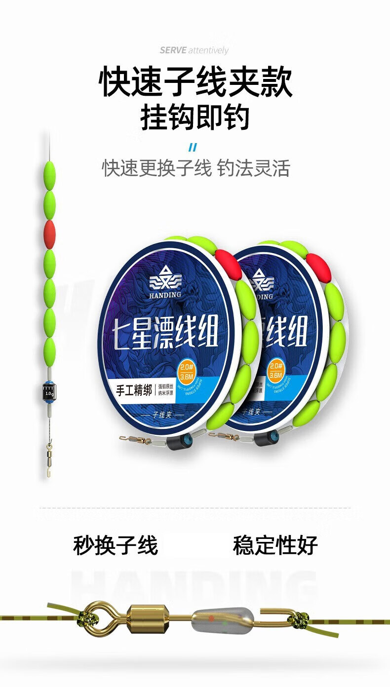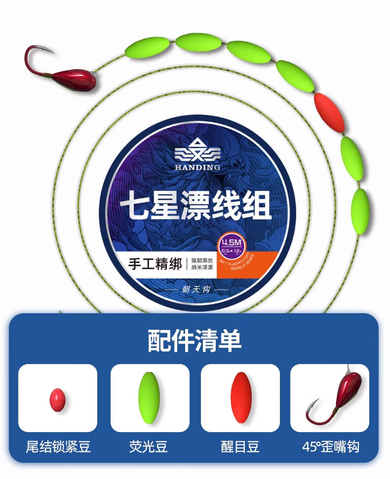 Handing Fishing Gear High Sensitivity Seven-Star Floating Line Group with Strong Tension and Tie Line Group Traditional Fishing Fine Binding Finished Main Line Line Group 4.8m Strong Tension Upgraded Enhanced Version (Single Pack) No. 1.5