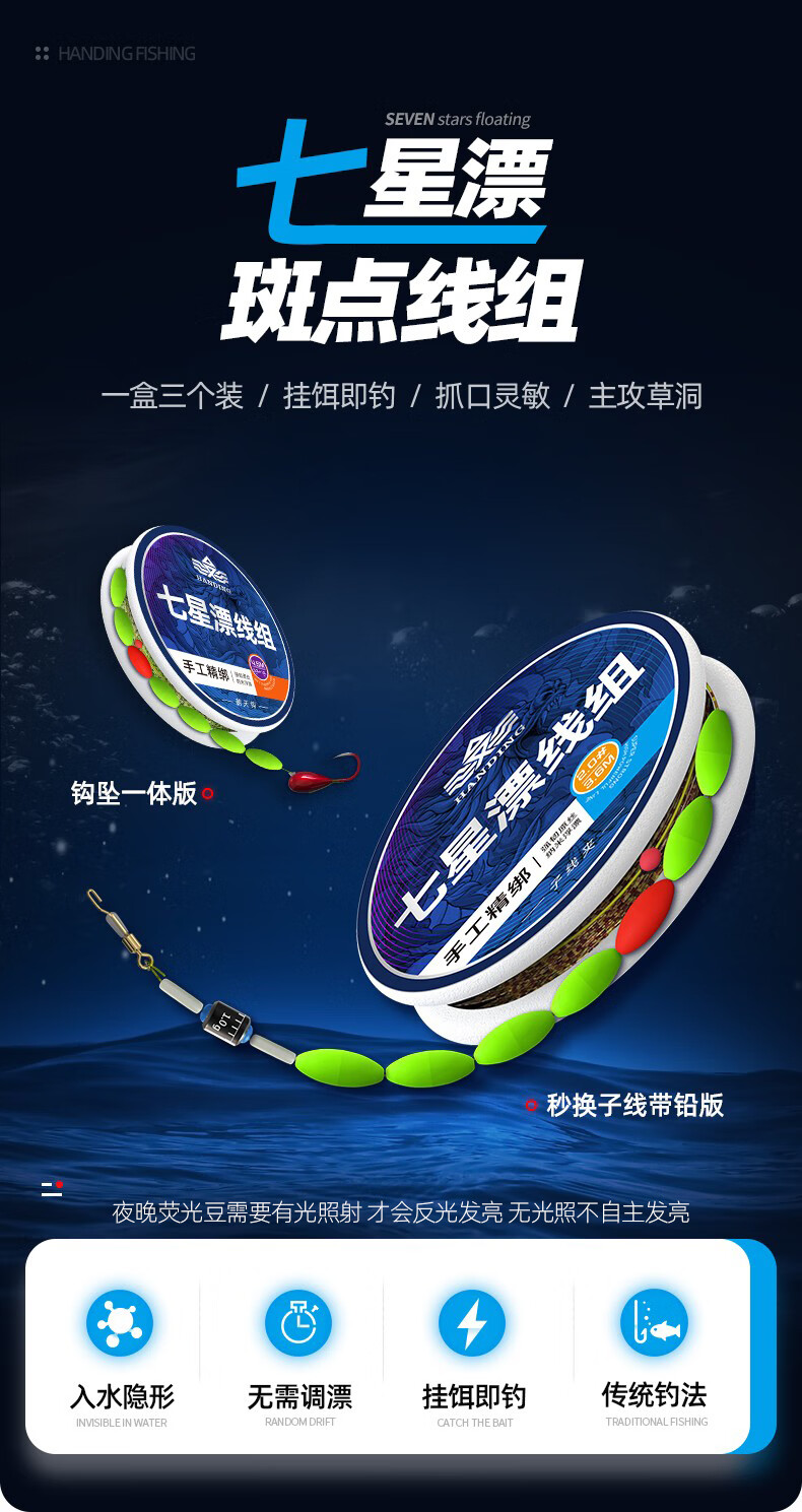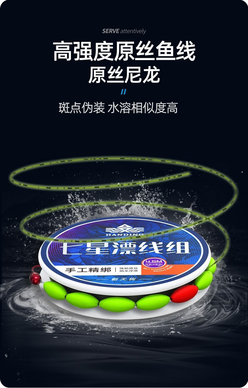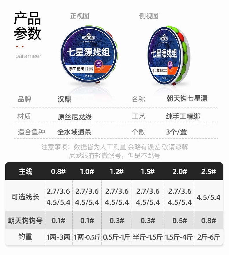 Handing Fishing Gear High Sensitivity Seven-Star Floating Line Group with Strong Tension and Tie Line Group Traditional Fishing Fine Binding Finished Main Line Line Group 4.8m Strong Tension Upgraded Enhanced Version (Single Pack) No. 1.5