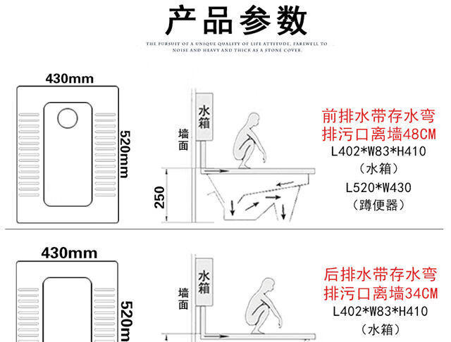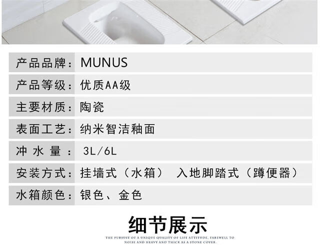 Comfortable Eagle brand household flush tank set, ceramic squat toilet, anti-clogging, silent and odor-proof, complete set of squat toilet, luxury low-key brushed silver A with trap front drainage