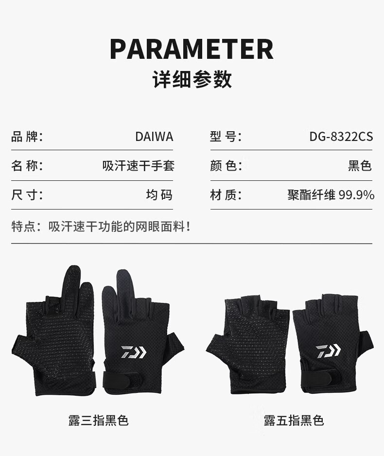 Dayiwa Dayiwa gloves DG-8322CS sweat-absorbent and quick-drying gloves, mesh breathable fingerless gloves, fishing gloves, three-finger gloves