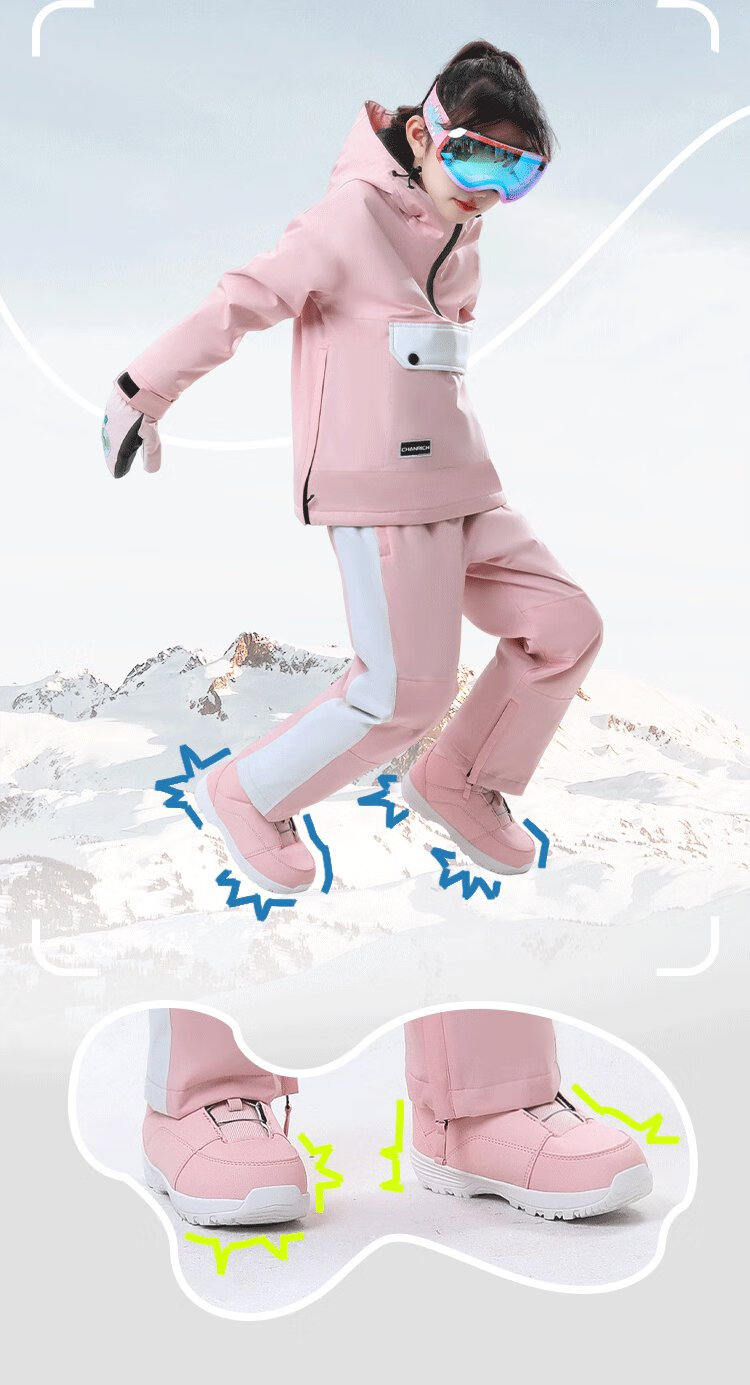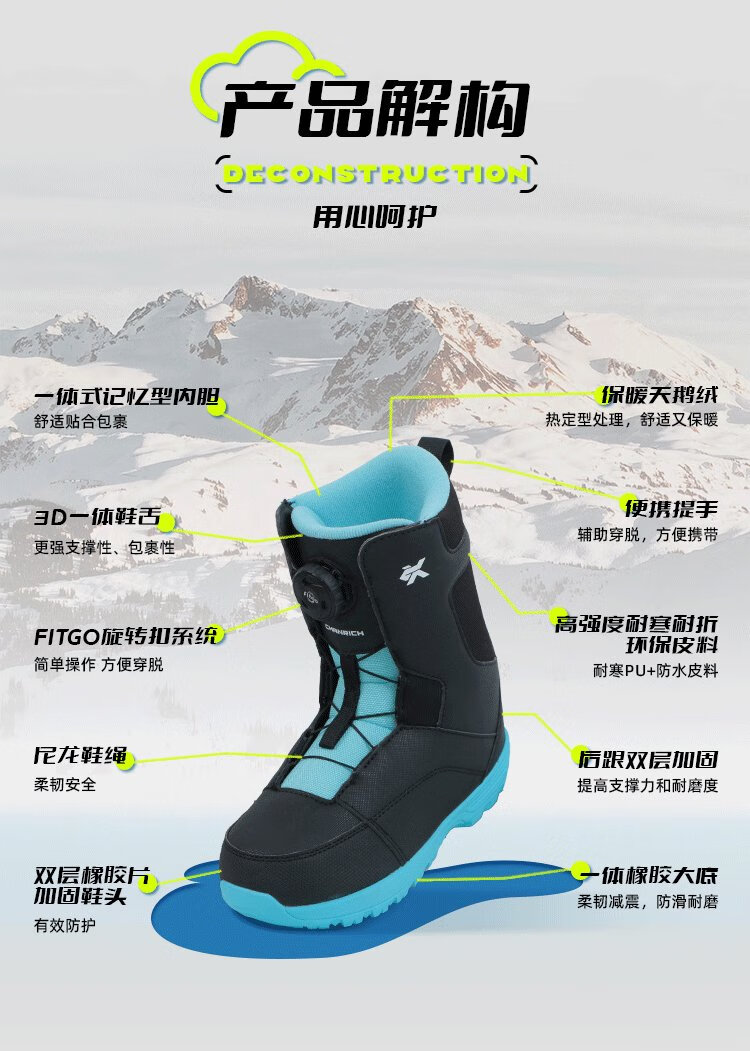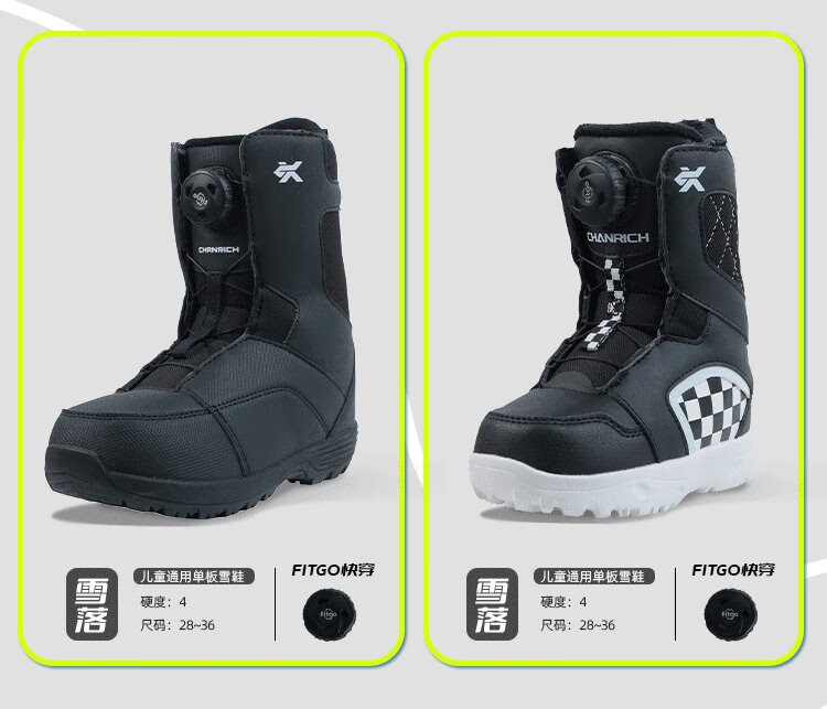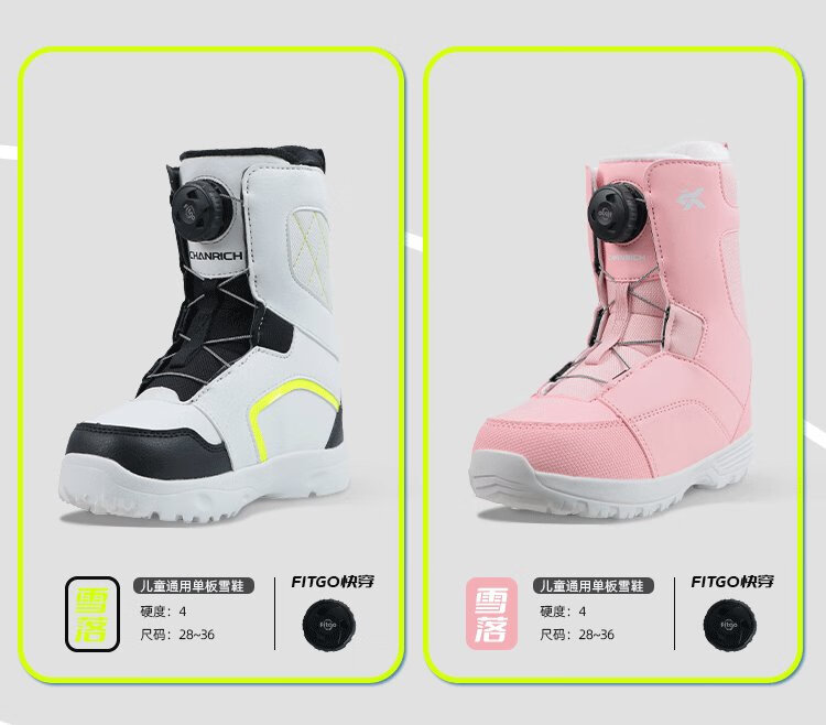 CHANRICH儿童单板滑雪鞋青少年初学者 快穿旋钮扣 防水保暖全地域滑雪板靴 黑蓝-快穿旋转扣 30