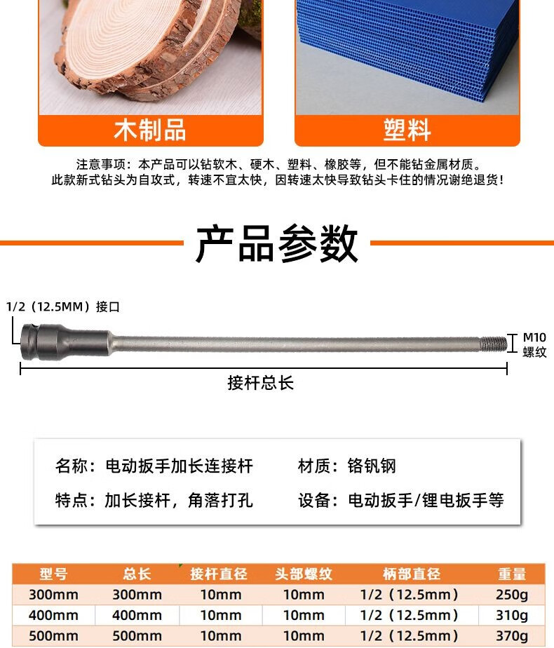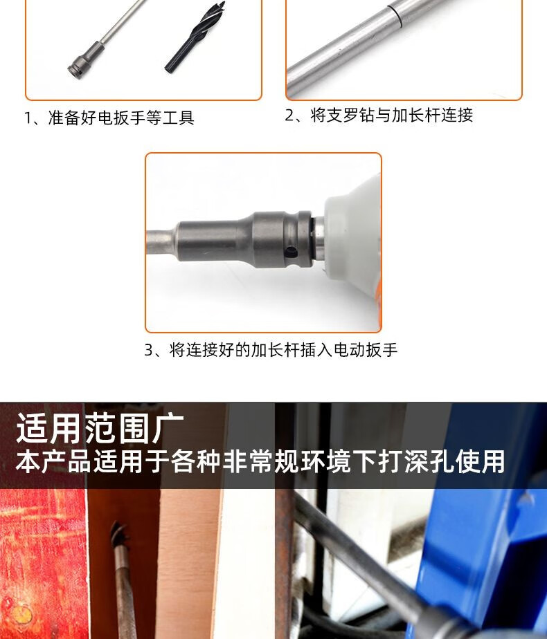 Fanglong integrated electric wrench drill bit post rod wooden drill electric wrench extended pagoda drill bit woodworking support drill integrated electric wrench extension rod 300mm