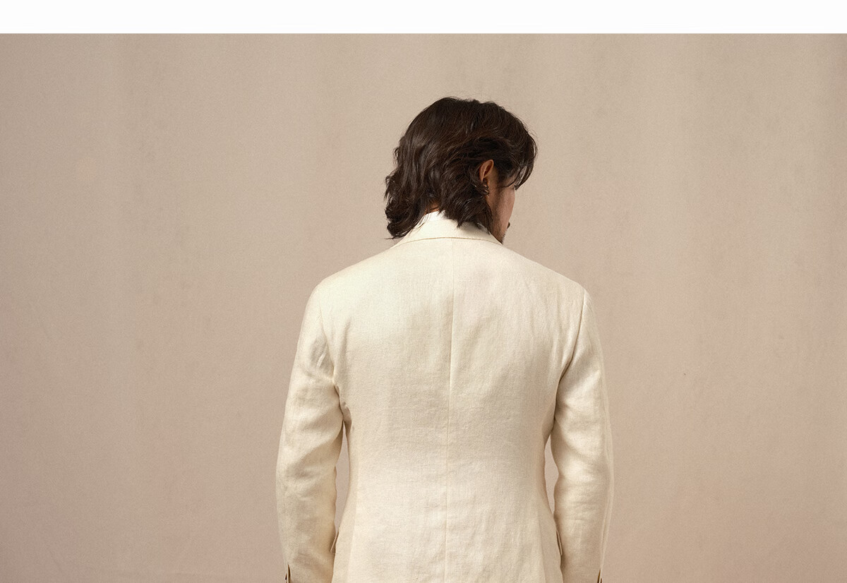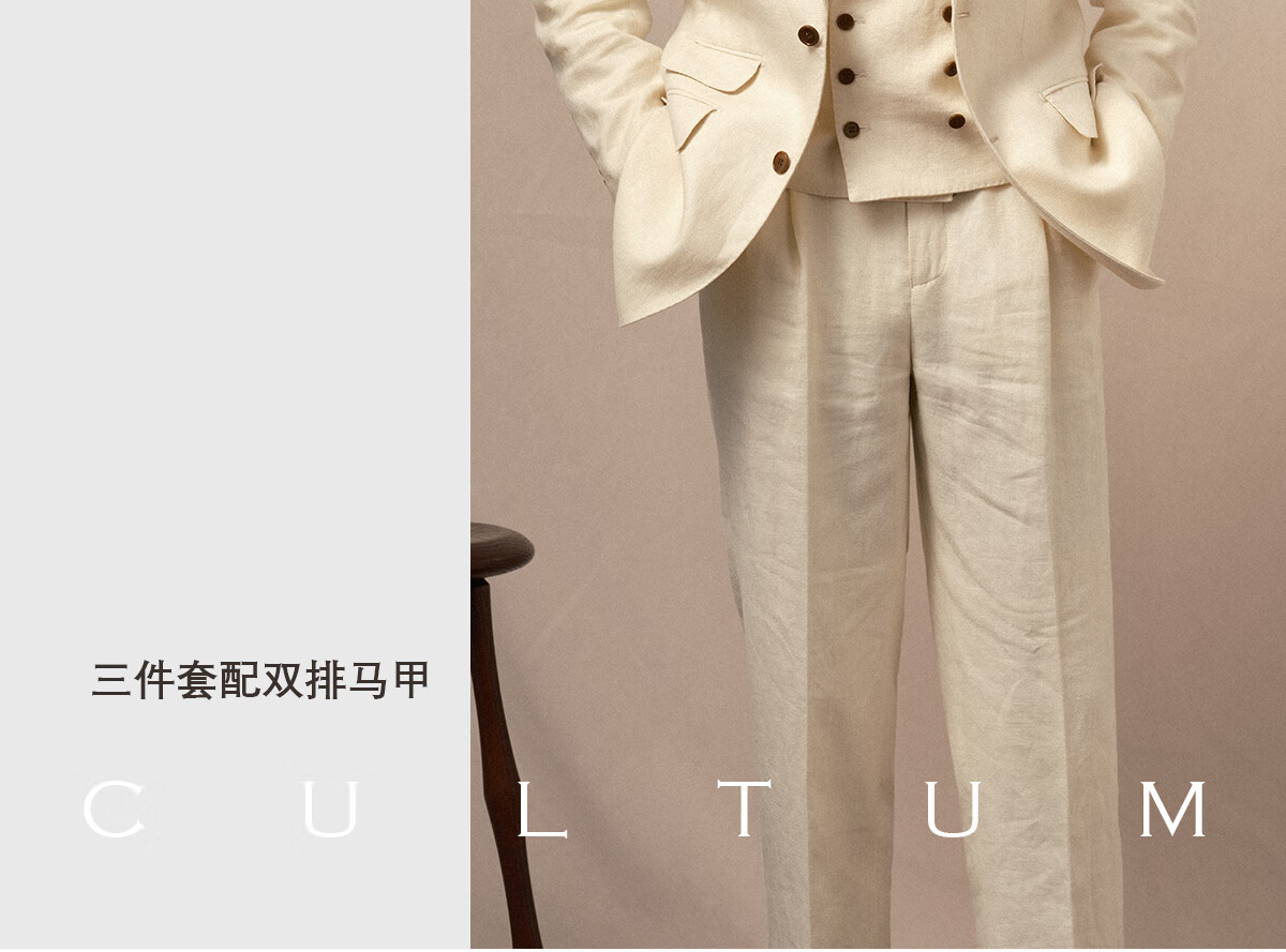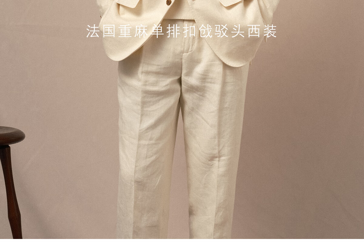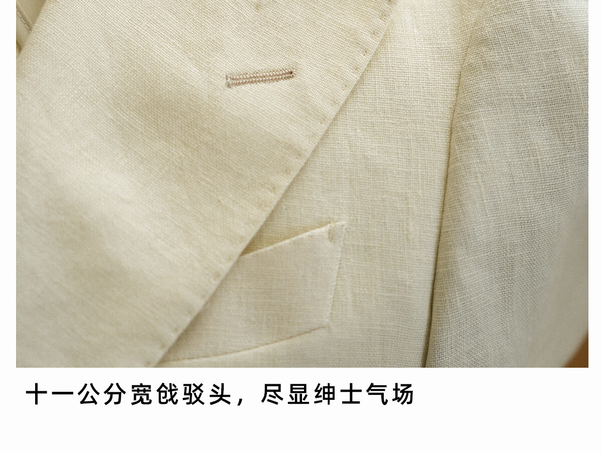CULTUM 100% French linen peaked lapel single-breasted business suit suit men's groom wedding casual suit single suit ivory white single suit 54 A