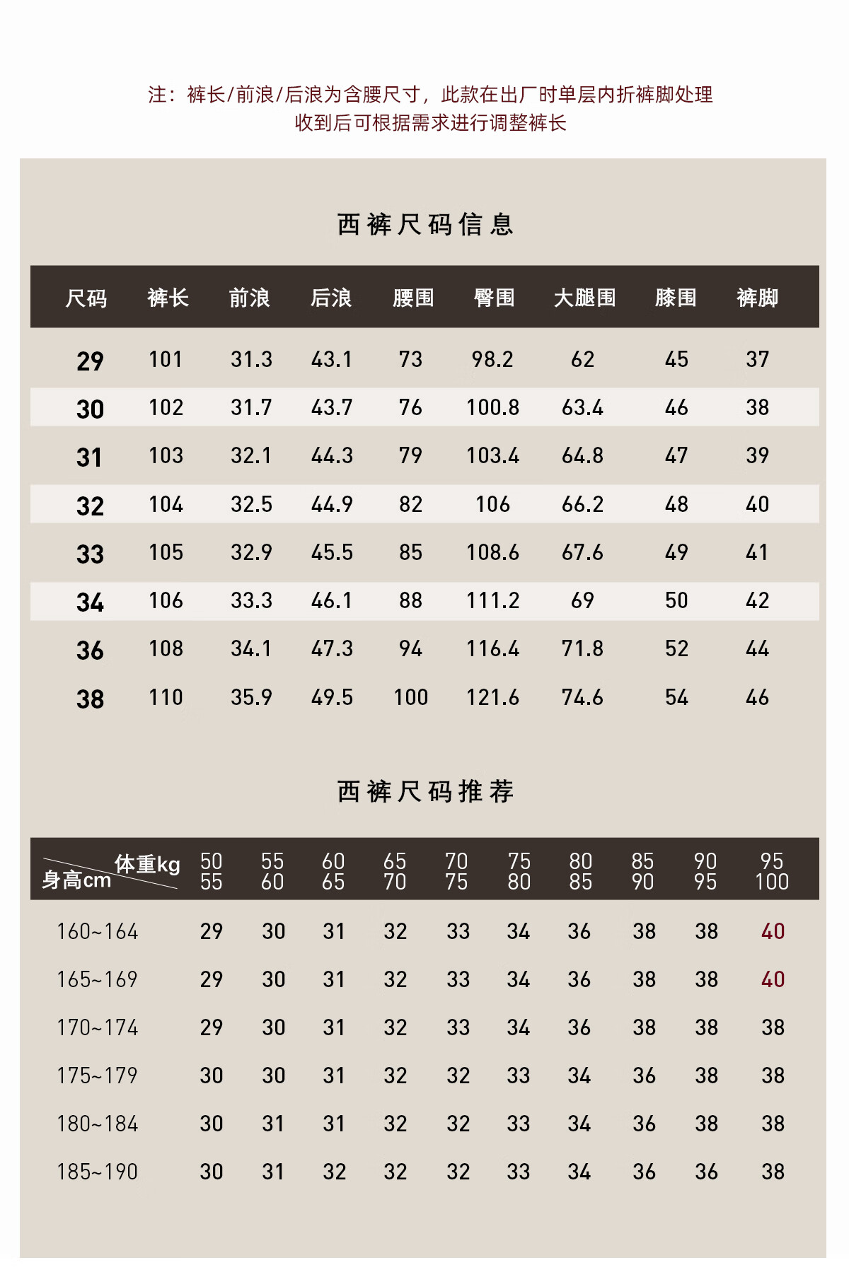 China (cm) 160-165/84-86 165-170 / 88-90 167-172 / 92-96 168-173 / 98-102 170-176 / 106-110