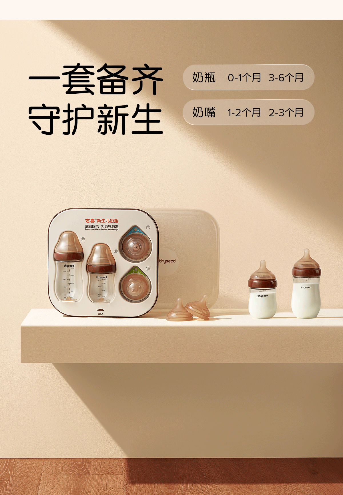 Shixi newborn bottle 0-6 months baby glass bottle anti-colic imitation breast milk pacifier 240ml (3-6 months)