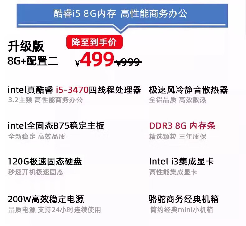Hack Core I5/I7 Business Office Desktop Computer Host Home Game Assembly Machine Enterprise Customer Service Complete Machine DIY Editing Art Graphic Designer Assembly Computer Package Two Core I5/8G/Solid State 120G