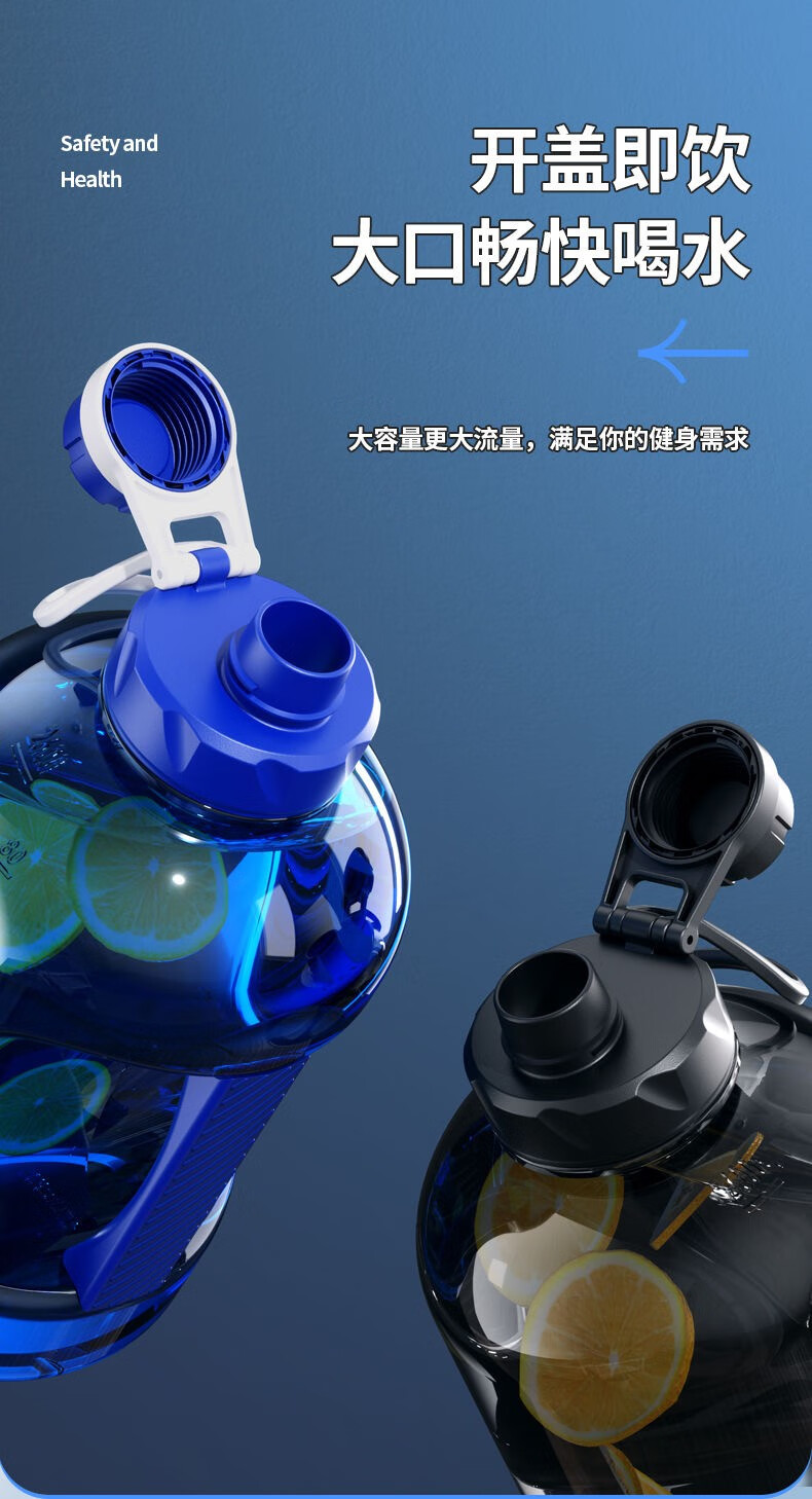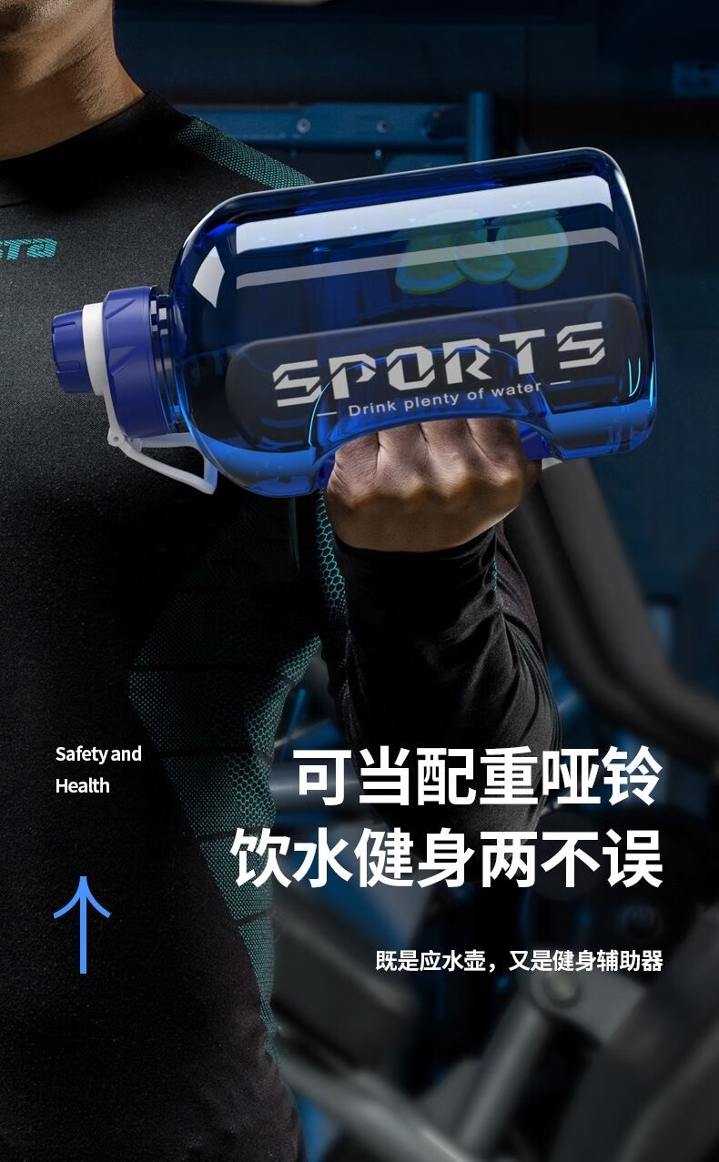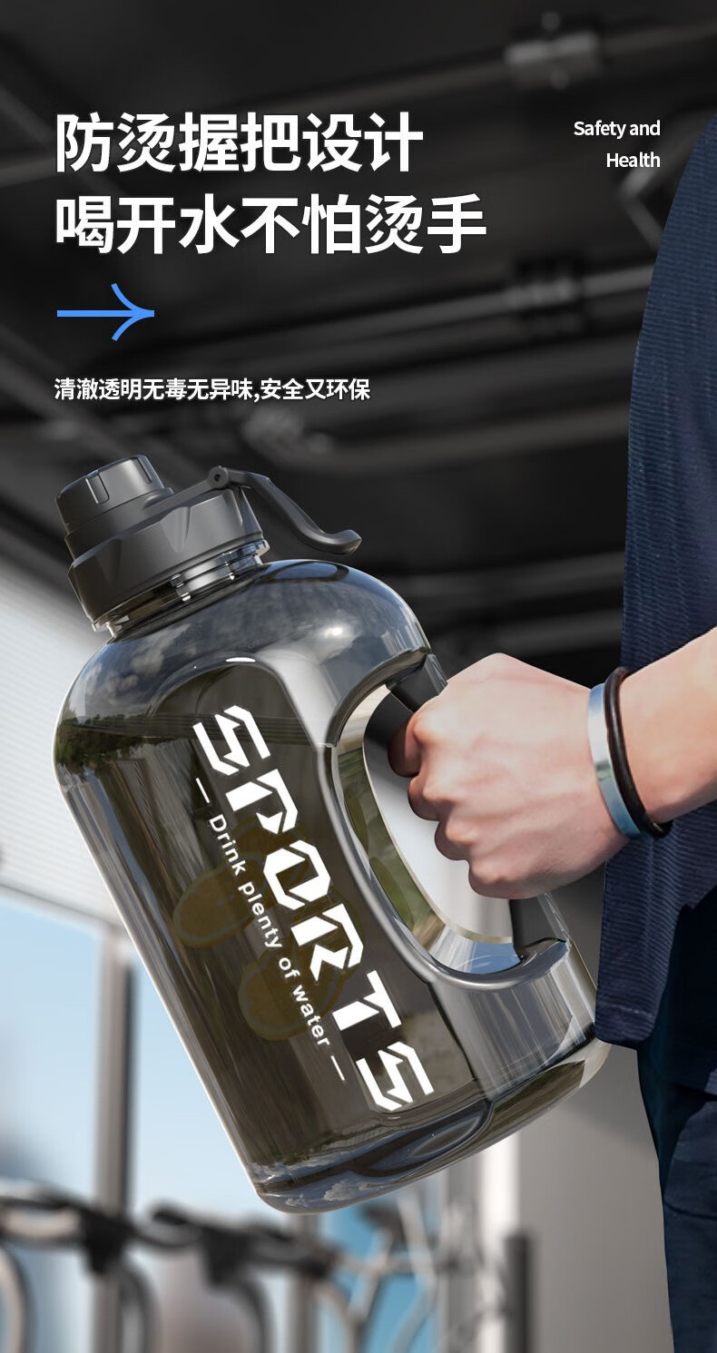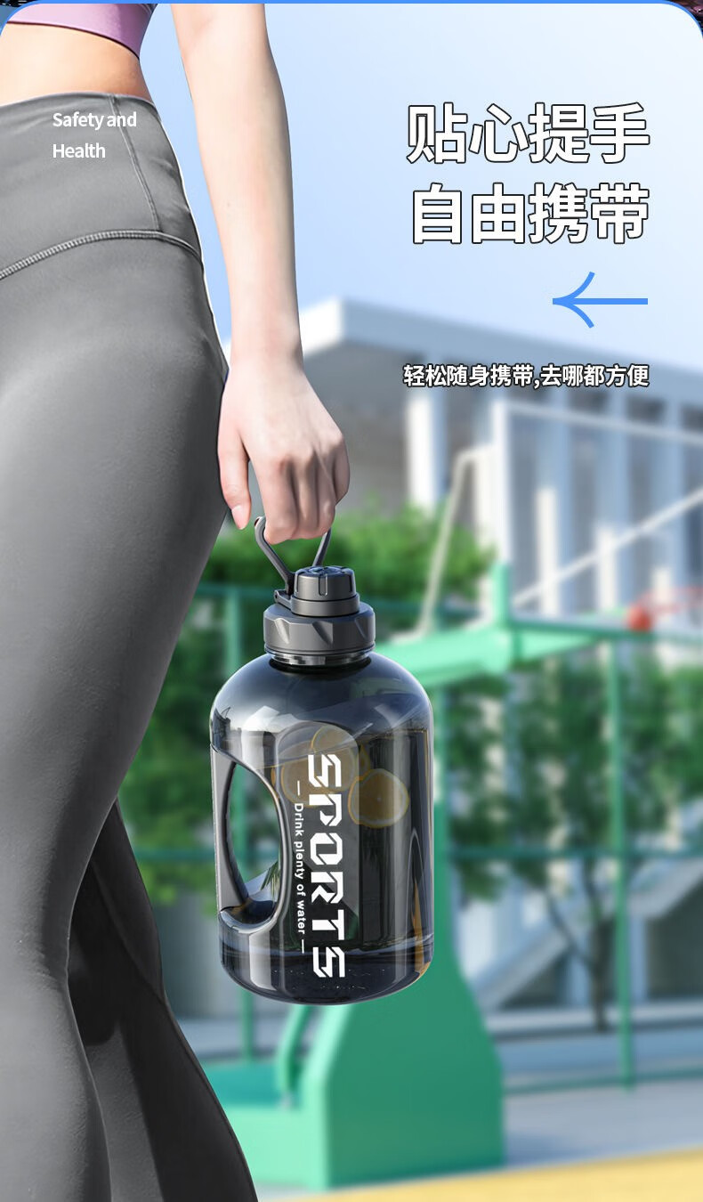 Chumi Water Cup Large Capacity Kettle Sports Fitness Water Cup with Straw Dunton Bucket Plastic Cup Pot Portable Big Belly Cup Straw + Tea Leak Anti-scalding Cup Handle 1800ml