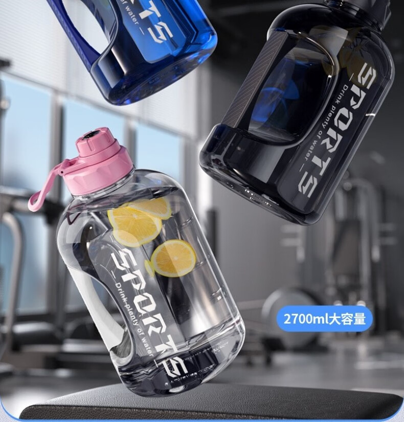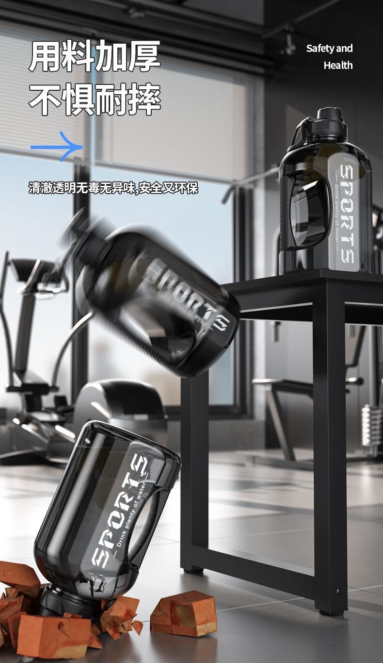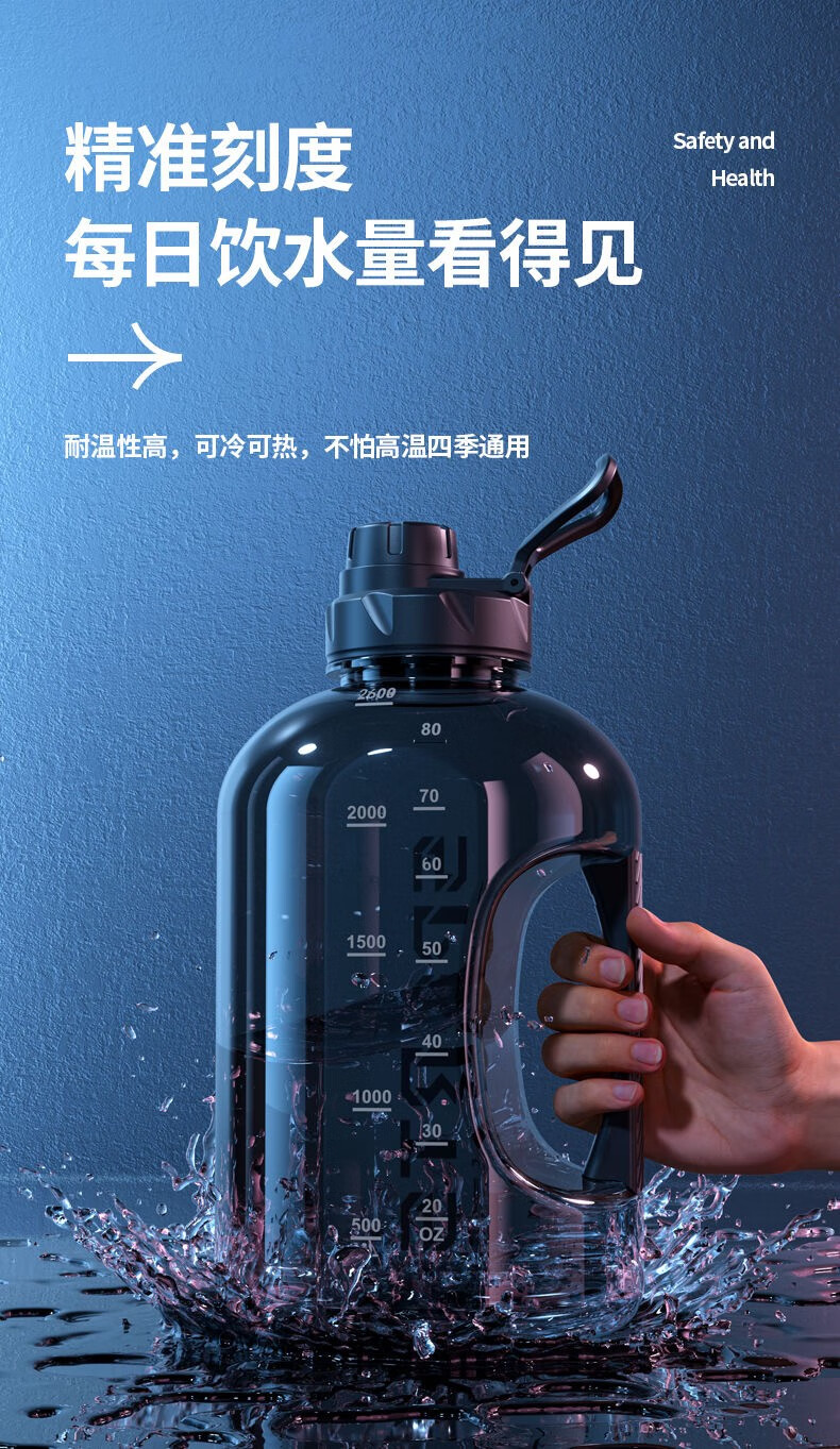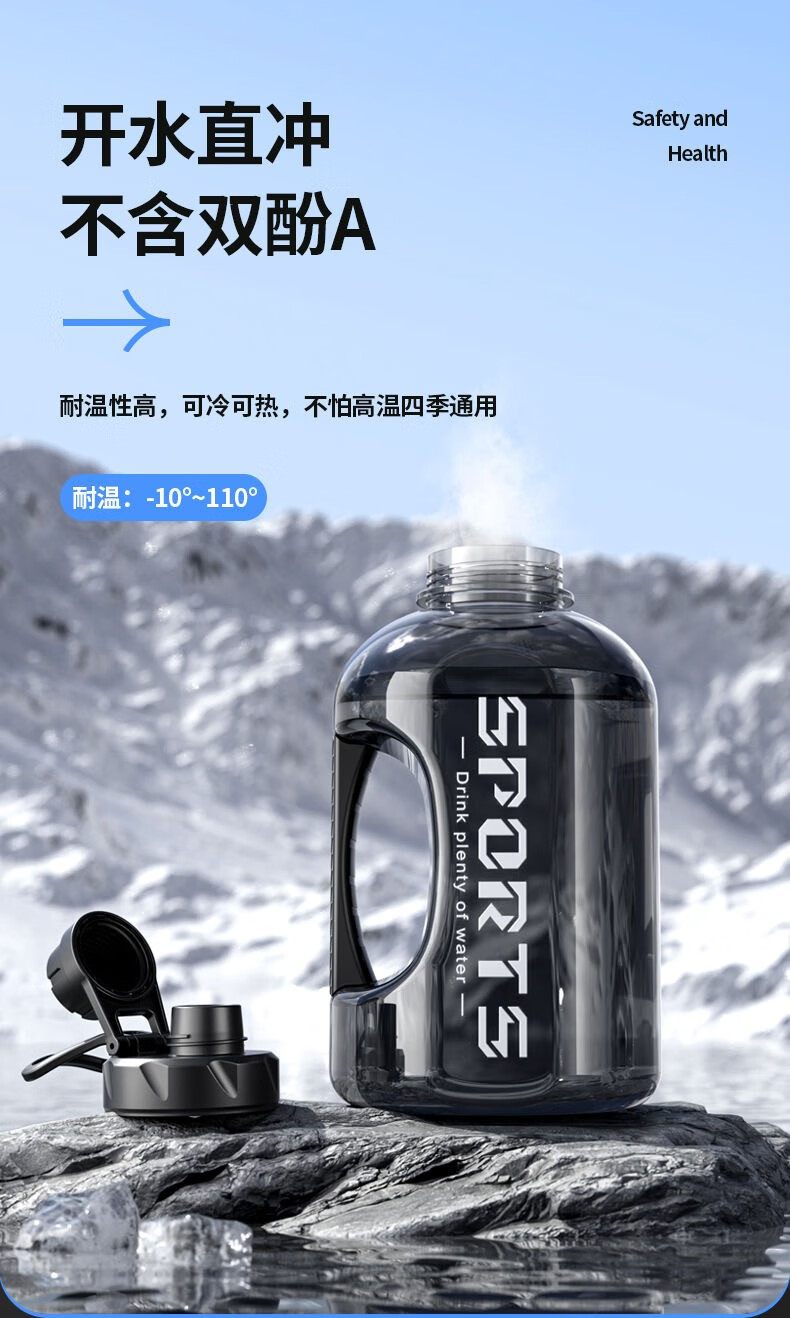 Chumi Water Cup Large Capacity Kettle Sports Fitness Water Cup with Straw Dunton Bucket Plastic Cup Pot Portable Big Belly Cup Straw + Tea Leak Anti-scalding Cup Handle 1800ml
