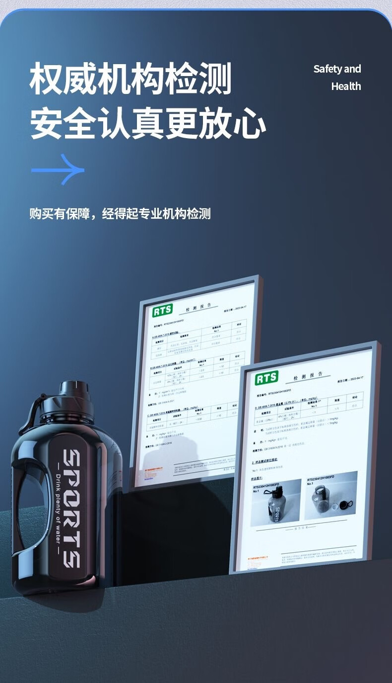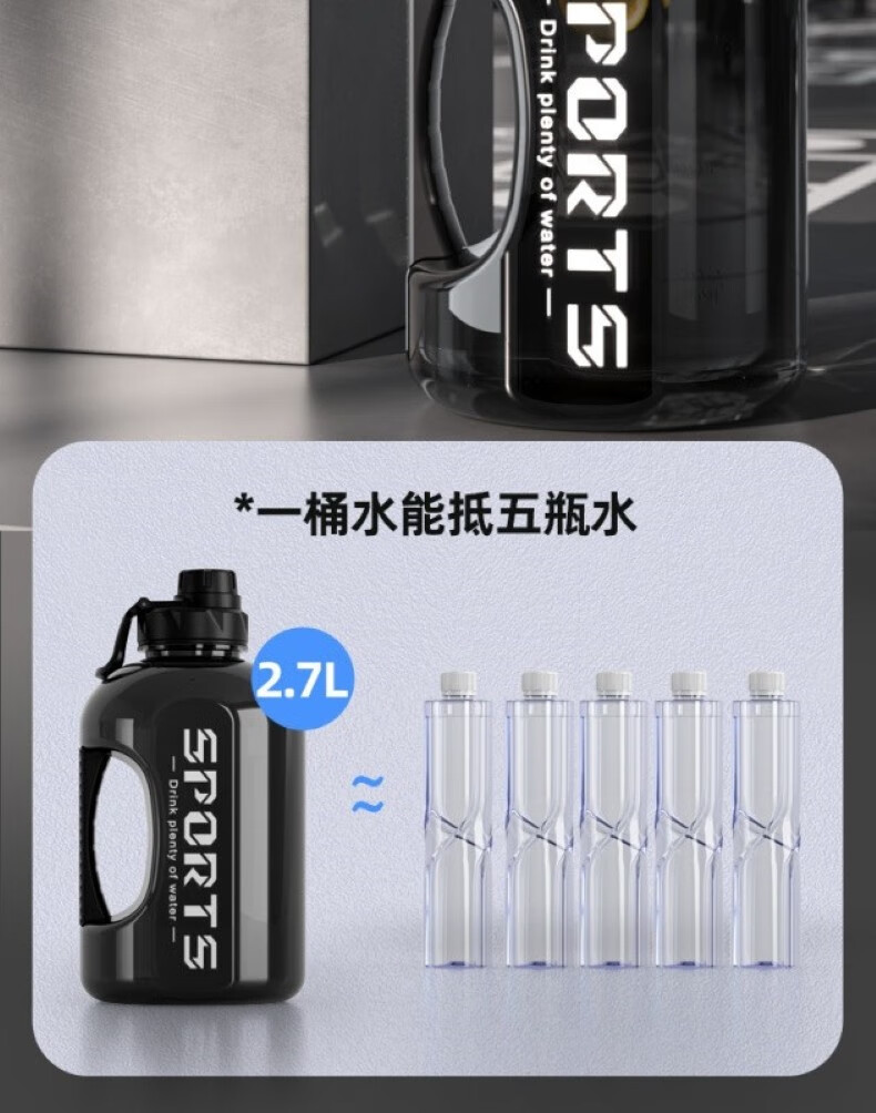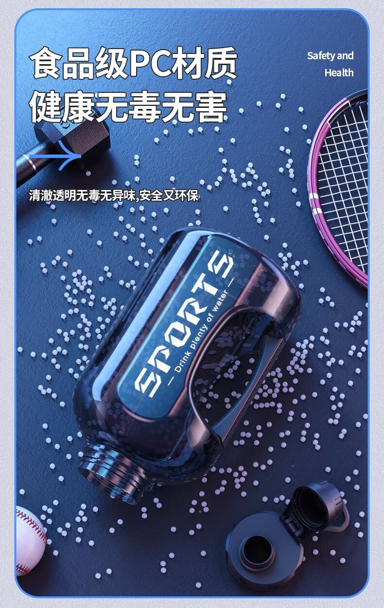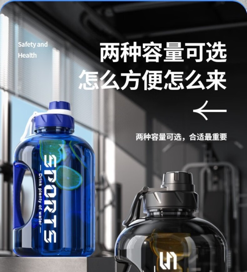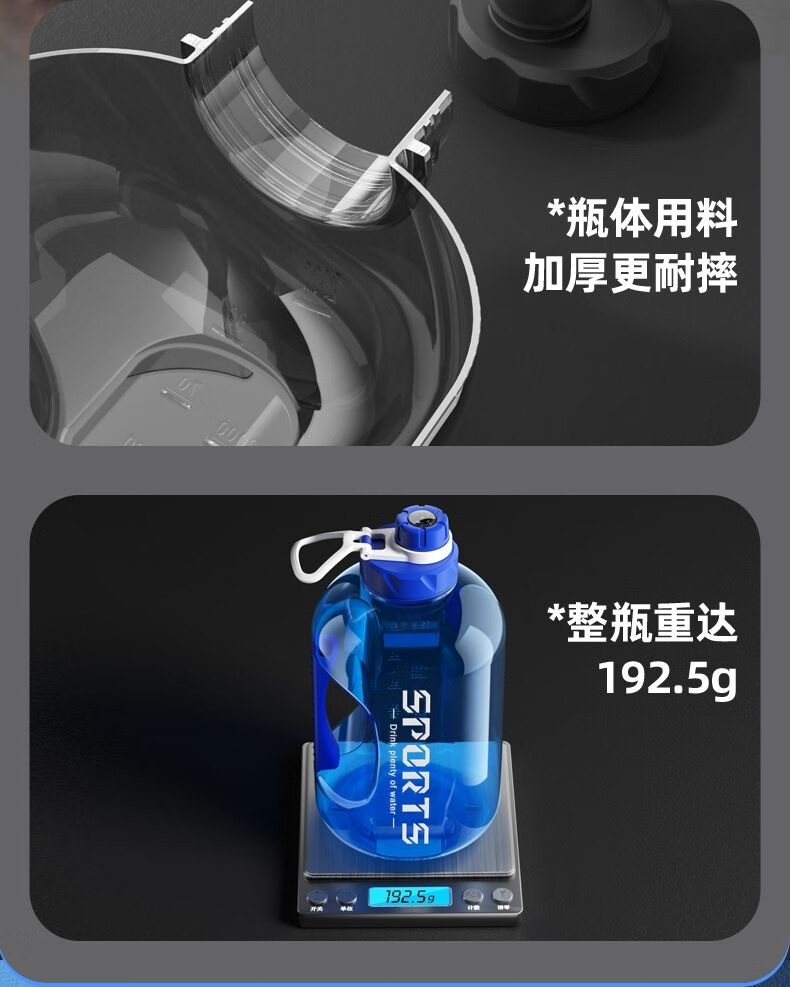 Chumi Water Cup Large Capacity Kettle Sports Fitness Water Cup with Straw Dunton Bucket Plastic Cup Pot Portable Big Belly Cup Straw + Tea Leak Anti-scalding Cup Handle 1800ml