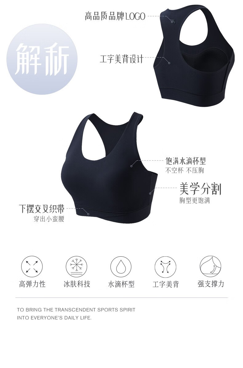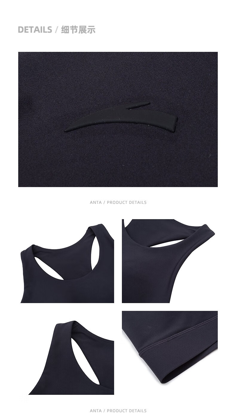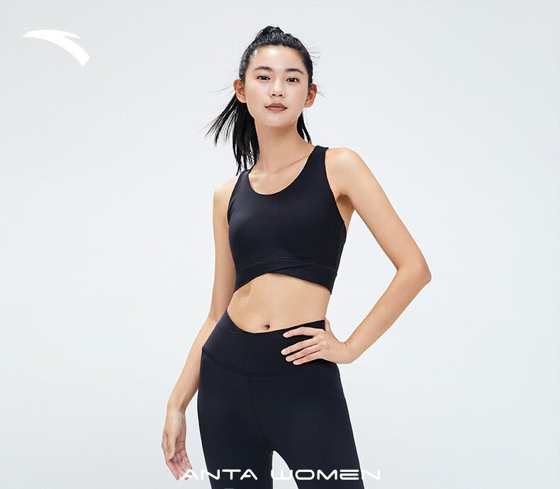 ANTA Small Waist Sports Vest Women's Autumn and Winter Outdoor Pilates Yoga Underwear Fitness Cushioning Bra BRA Basic Black-4 XS
