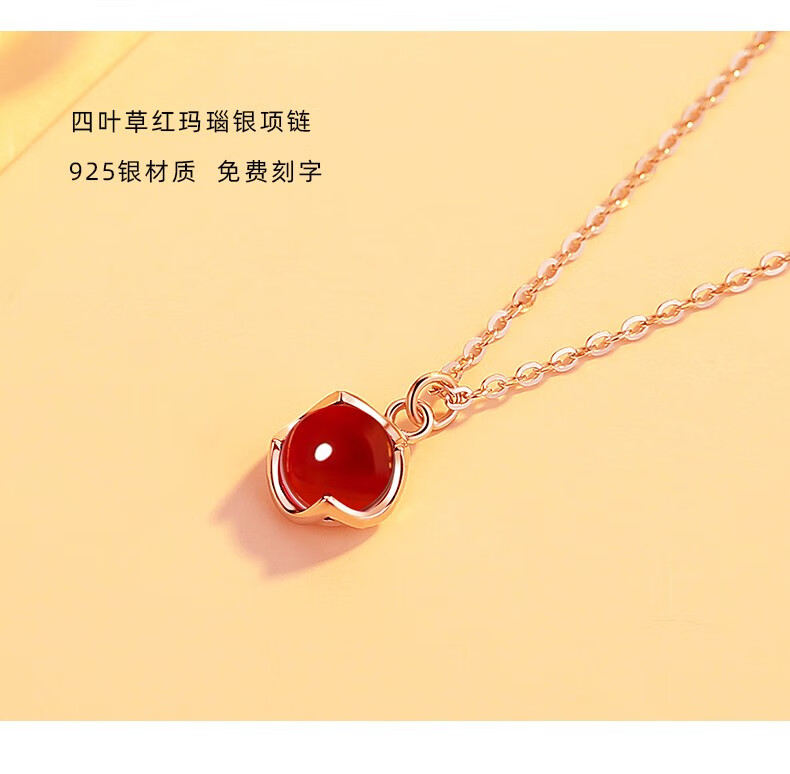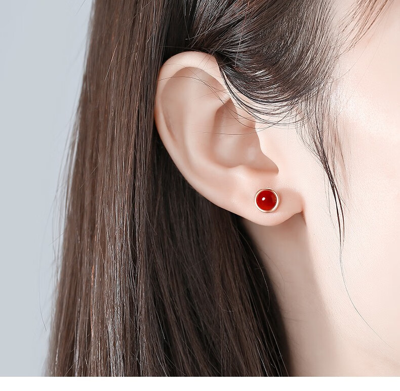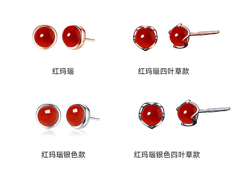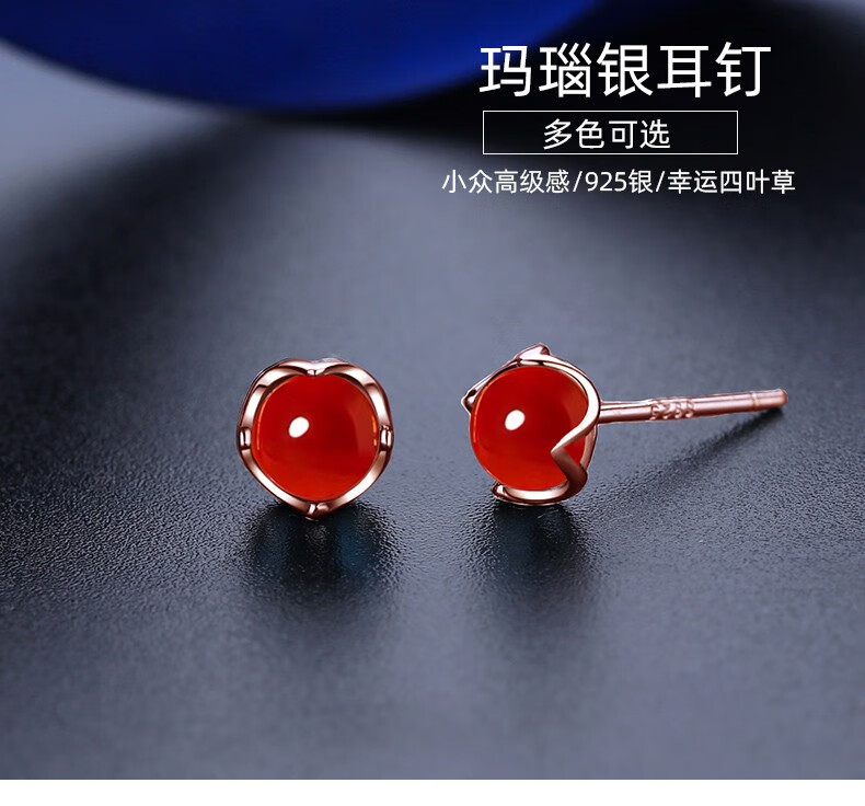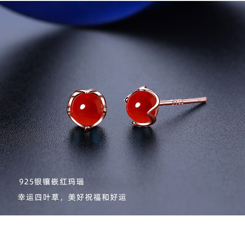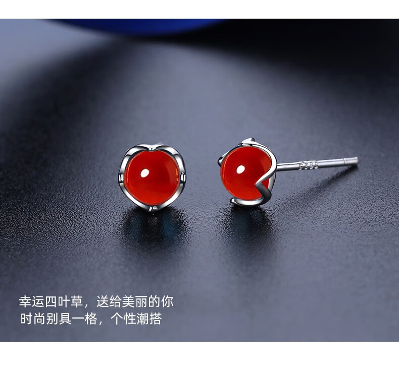 Timebetter Red Agate Earrings Women's 925 Silver Earrings Zodiac Year Red Lucky Clover Red Bean Birthday Gift Gift Box Red Agate Silver Four-Leaf Clover Earrings/Agate About 6mm 925 Silver Material