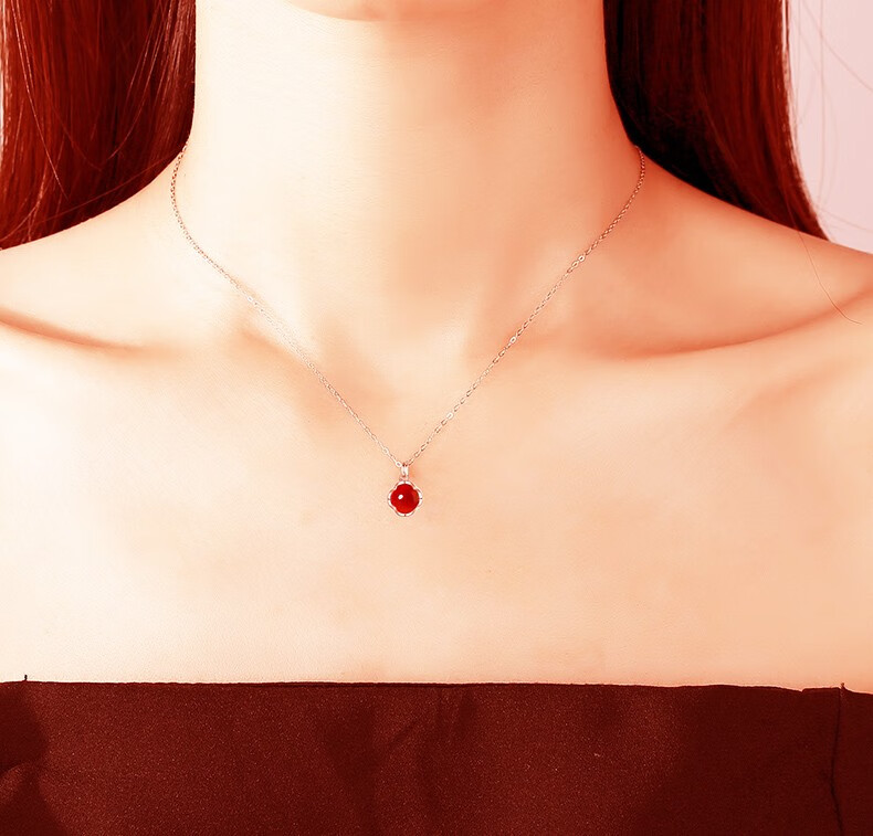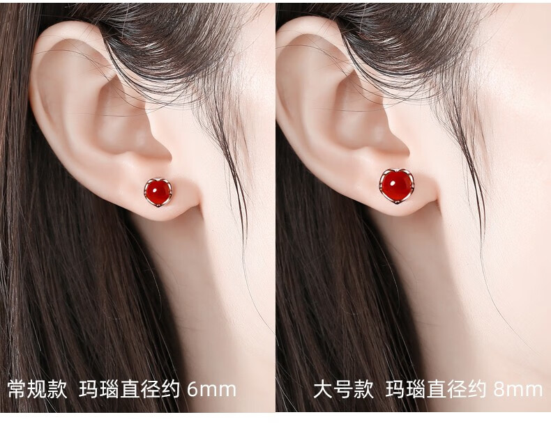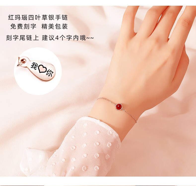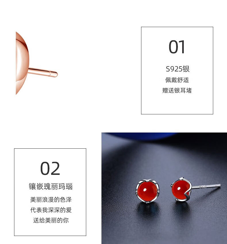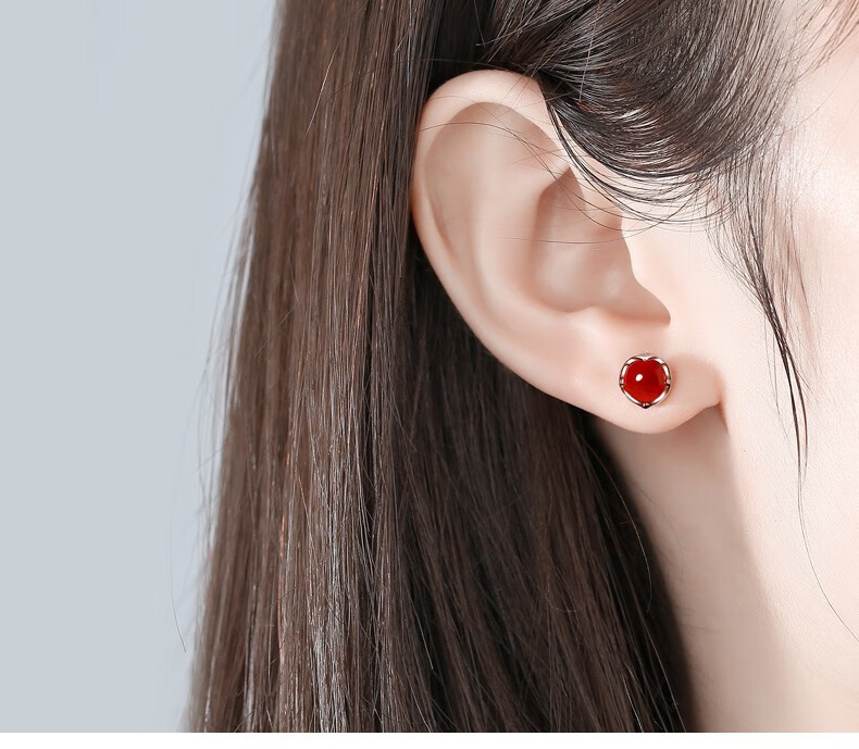 Timebetter Red Agate Earrings Women's 925 Silver Earrings Zodiac Year Red Lucky Clover Red Bean Birthday Gift Gift Box Red Agate Silver Four-Leaf Clover Earrings/Agate About 6mm 925 Silver Material