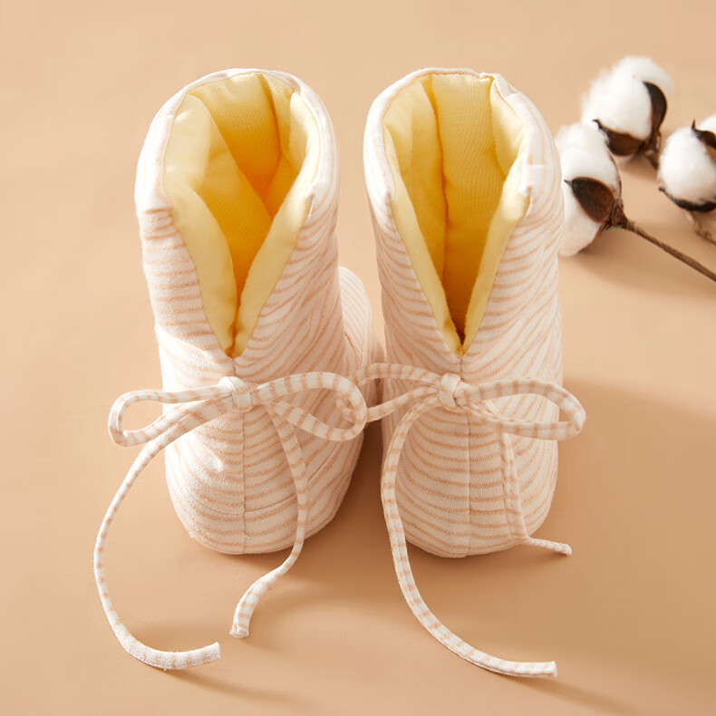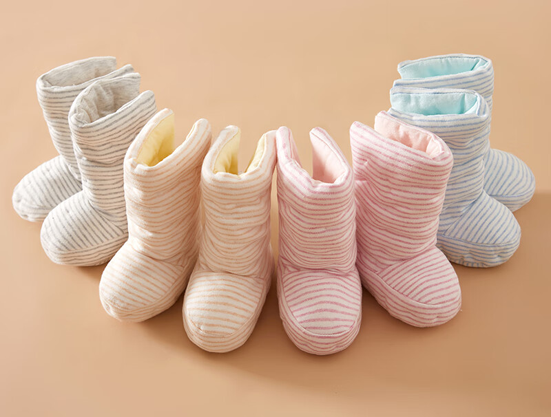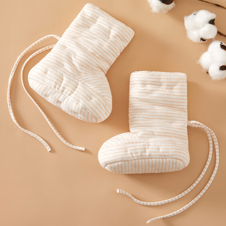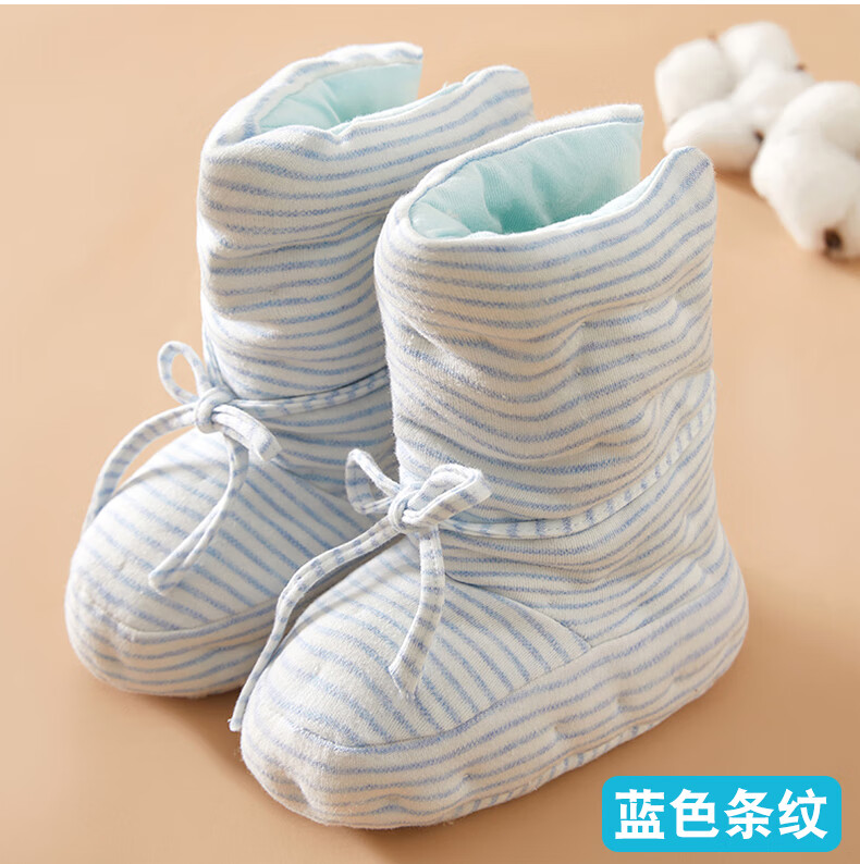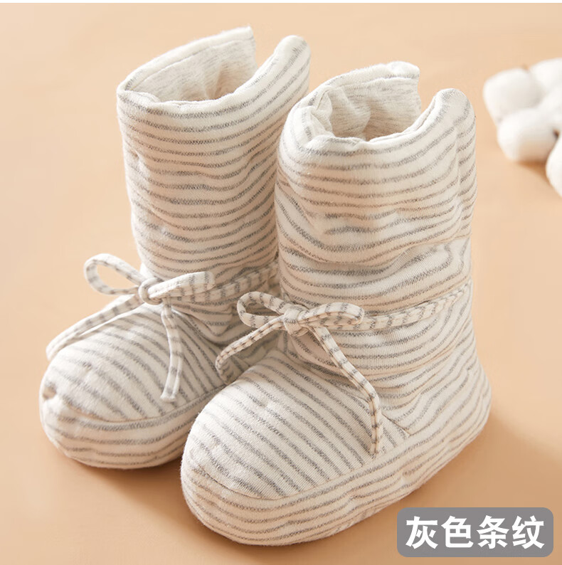 Mianguduo newborn handmade pure cotton shoes baby thickened warm foot protectors baby soft bottom 0-12 months cotton shoes gray stripes 6-12 months (inside length 13.5cm)