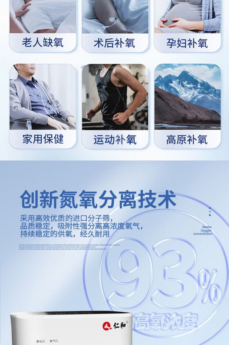 Renhe household oxygen concentrator high oxygen concentration oxygen nebulizer all-in-one machine light sound oxygen inhaler for the elderly pregnant women children nebulizer oxygen concentrator nasal oxygen tube double nasal plug nose frame oxygen tube household oxygen machine straw