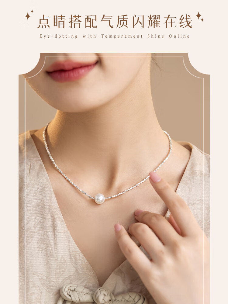Gin Chie Imitation Pearl Necklace for Women 2025 New Broken Silver Pendant Jewelry Valentine's Day Birthday Gift for Girlfriend Acacia Pearl Necklace/Beads Exquisite Gift Box