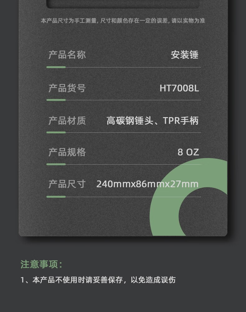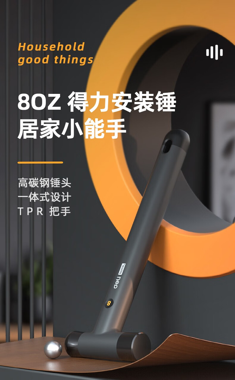Deli ball peen hammer home series installation hammer iron hammer steel hammer integrated hammer iron nail hammer 8OZ German design 8OZ round peen hammer HT7008L (green)
