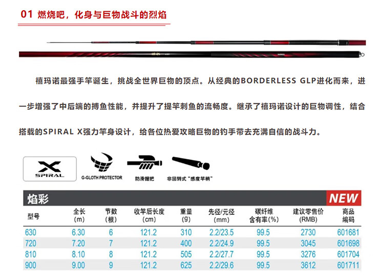 SHIMANO Shimano Flame Color Platform Fishing Rod 22 Styles Large Rod Vibration Boat Fishing for Herring and Grass Carp China Limited Edition Hand Rod 6.3m 22 Styles Flame Color 630/6 Sections