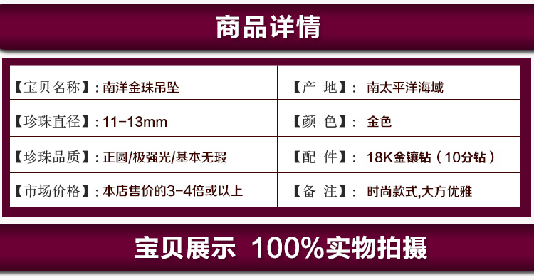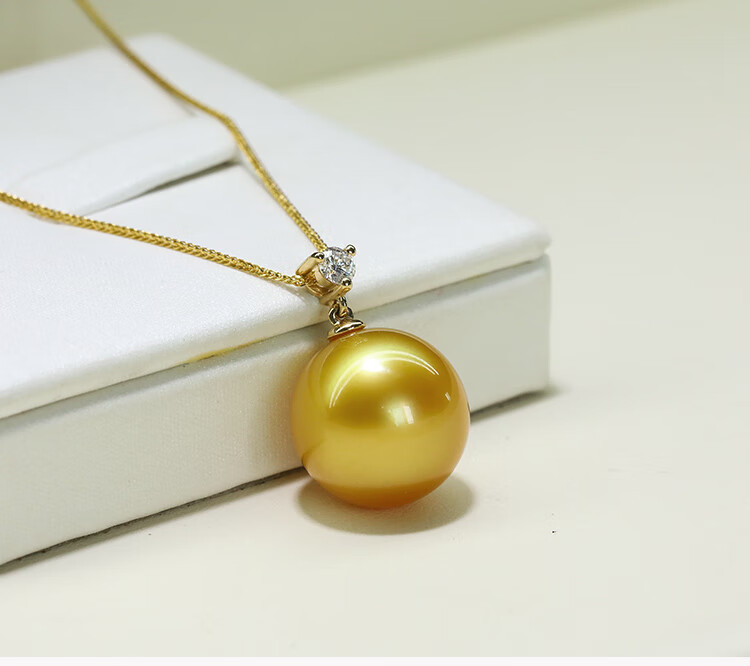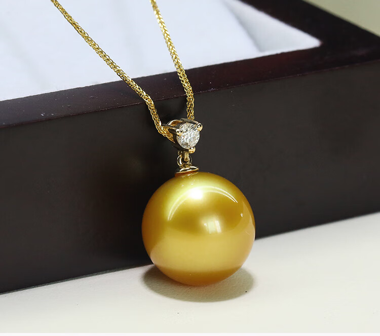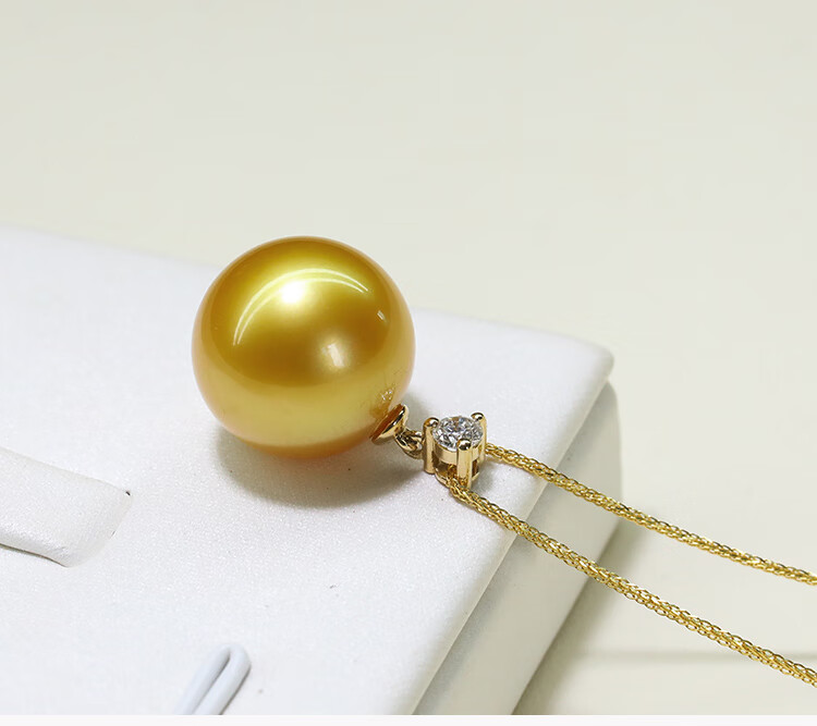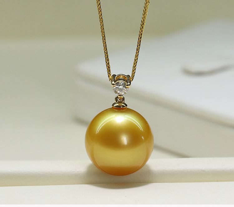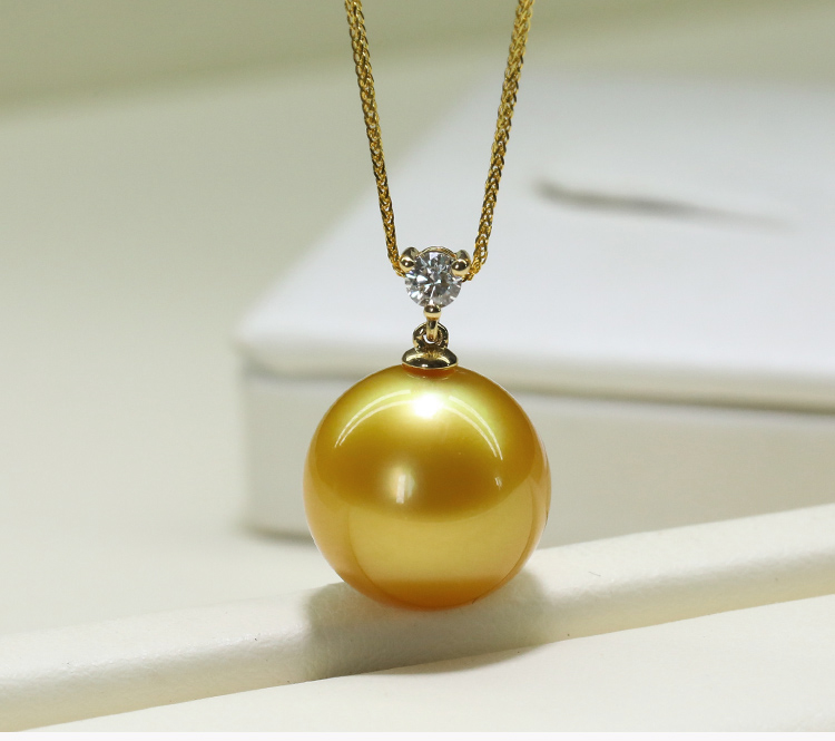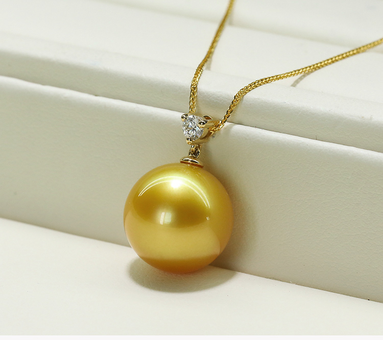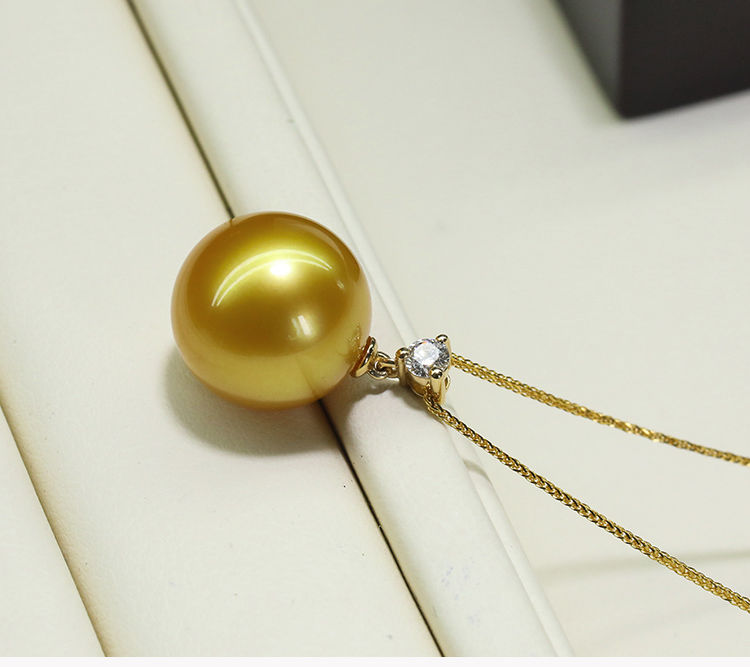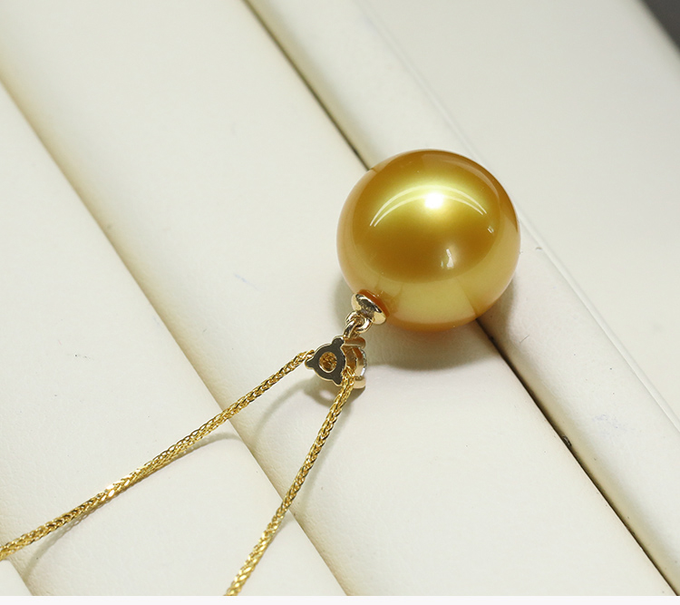 Mohs Australian South Sea gold bead pendant dark gold perfect round seawater pearl necklace 18K gold inlaid with diamonds extremely bright customized model 14-15mm