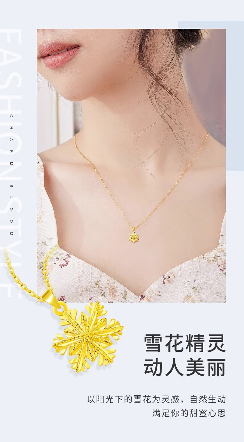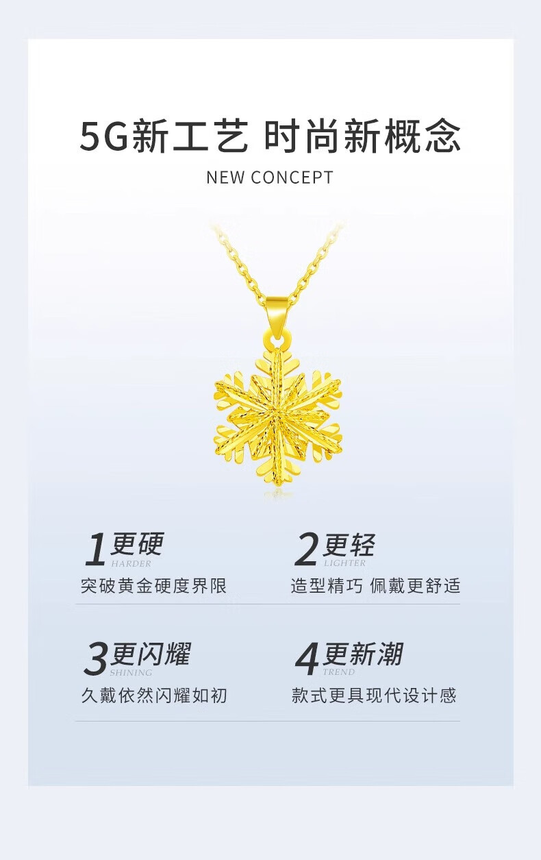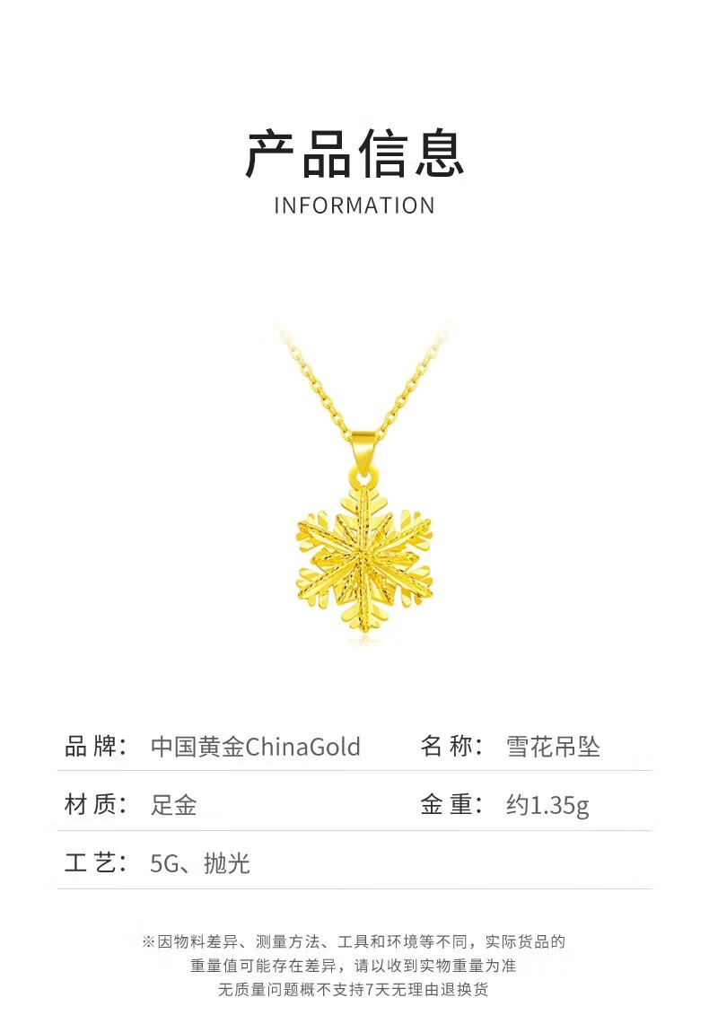 CHINA GOLD Gold Necklace Women's 999 Pure Gold Snowflake Necklace 5G Gold Valentine's Day Birthday Gift Year of the Horse Animal Year Gift Gift for Girlfriend *Snowflake Pendant About 0.95g Free Silver Chain