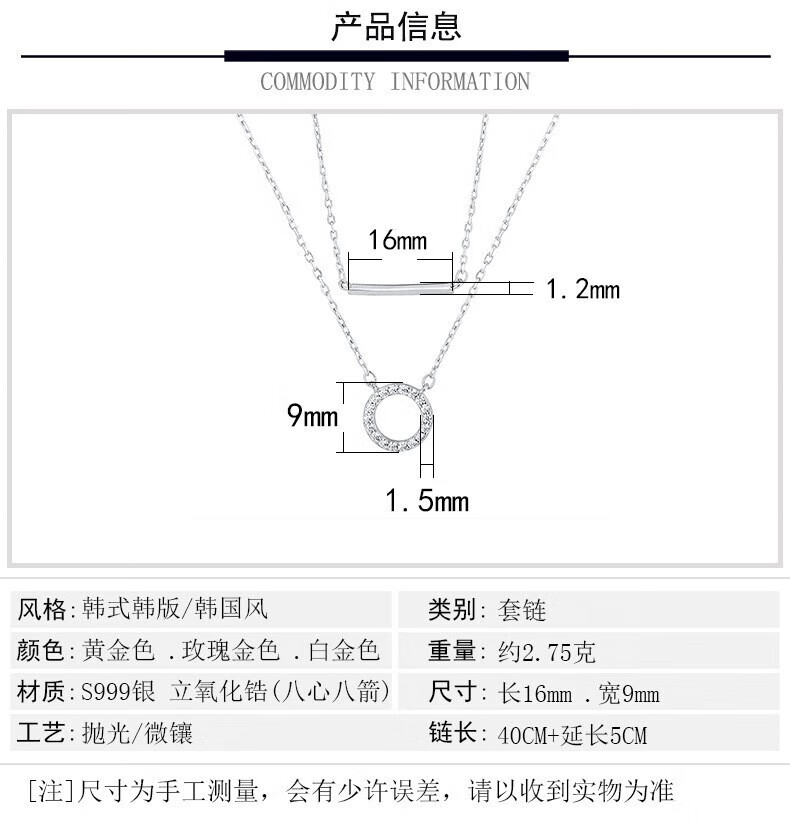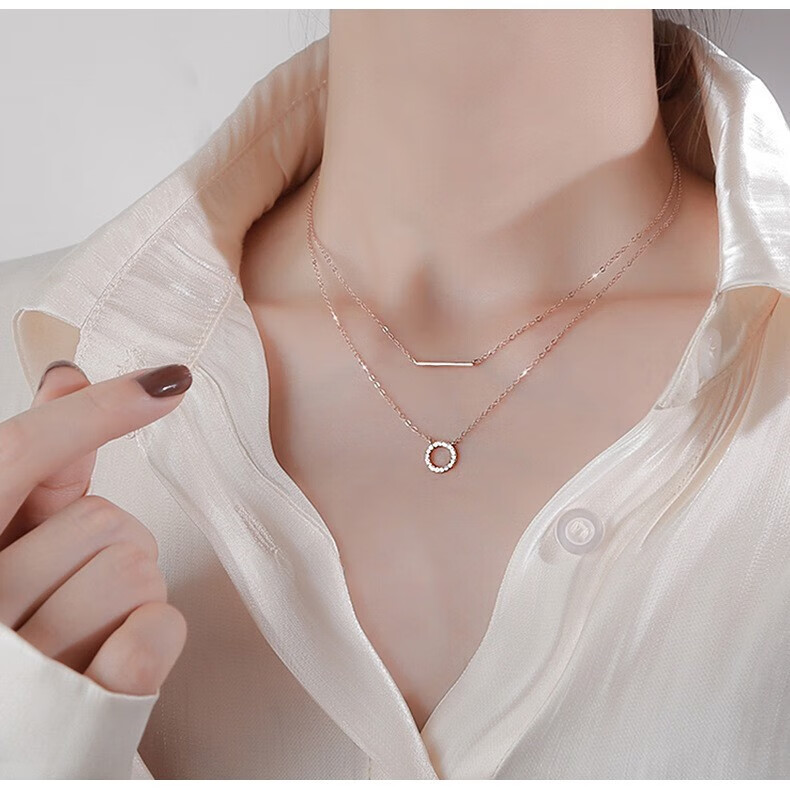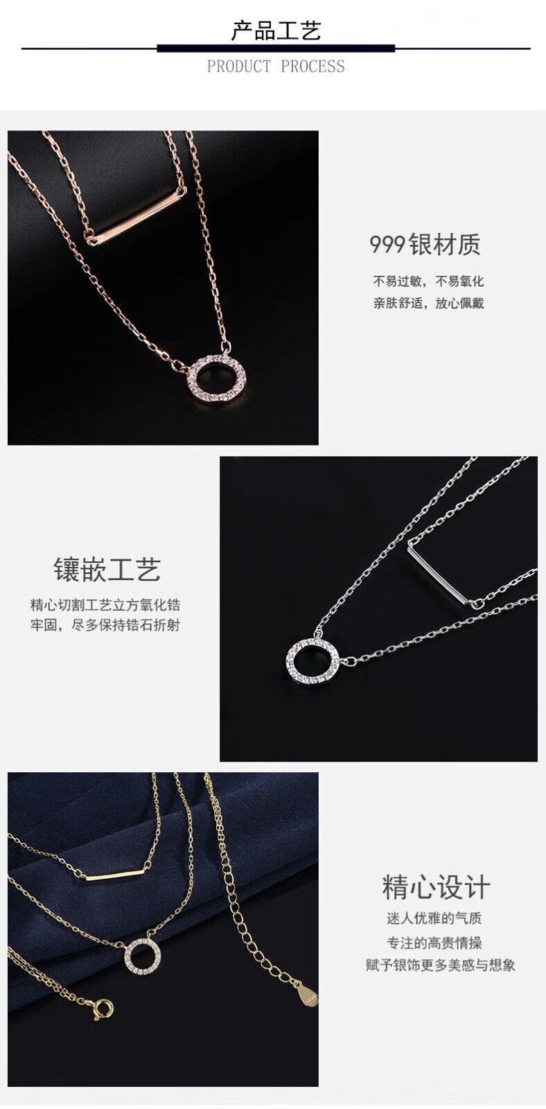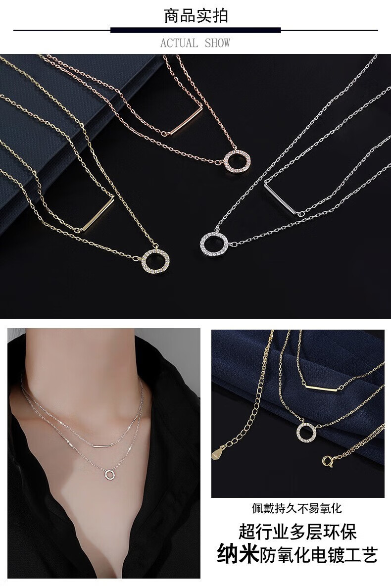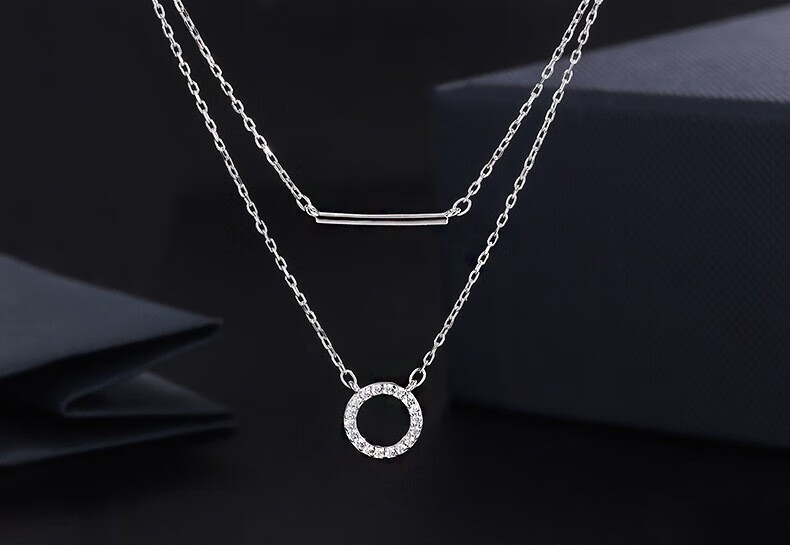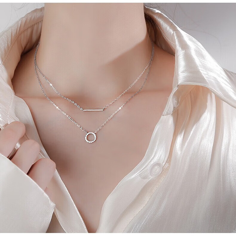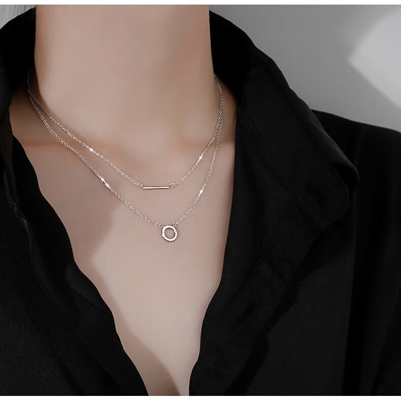 Chaoyu S999 solid silver one-word double-layer stacked necklace for women, diamond-encrusted clavicle chain, temperament necklace, birthday and Valentine's Day gift, silver necklace, exquisite gift box