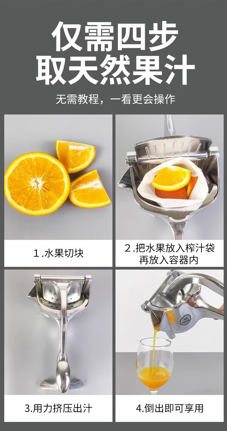 Longbang Shengtai multifunctional thickened manual juicer sugarcane pomegranate orange juice squeezer household fruit press lemon juicer artifact bright thickening upgraded model + 10 juice bags