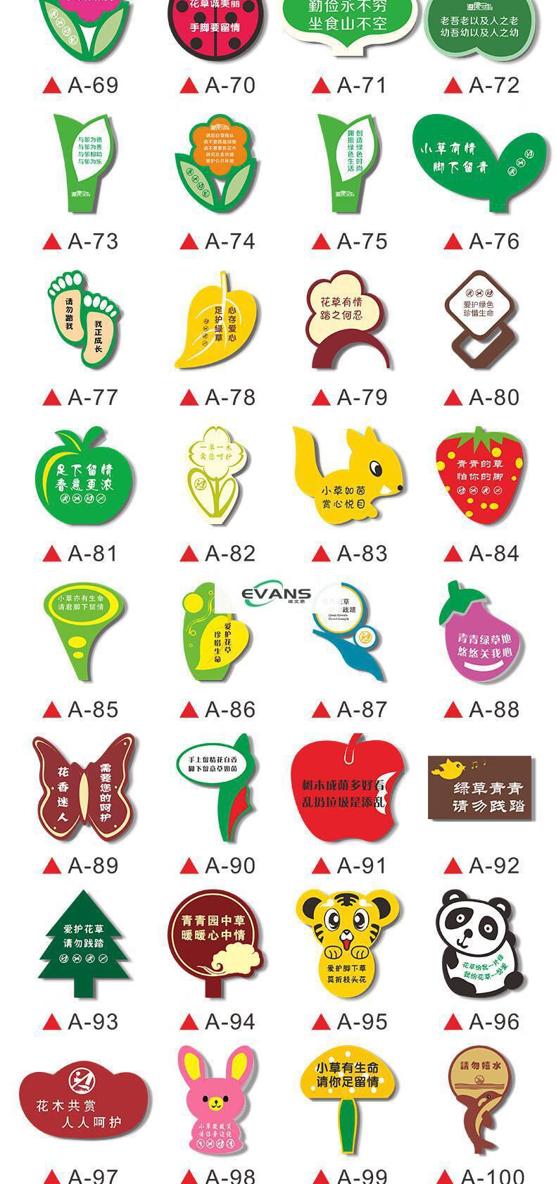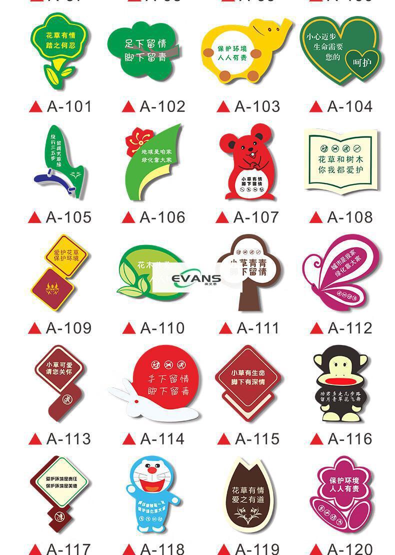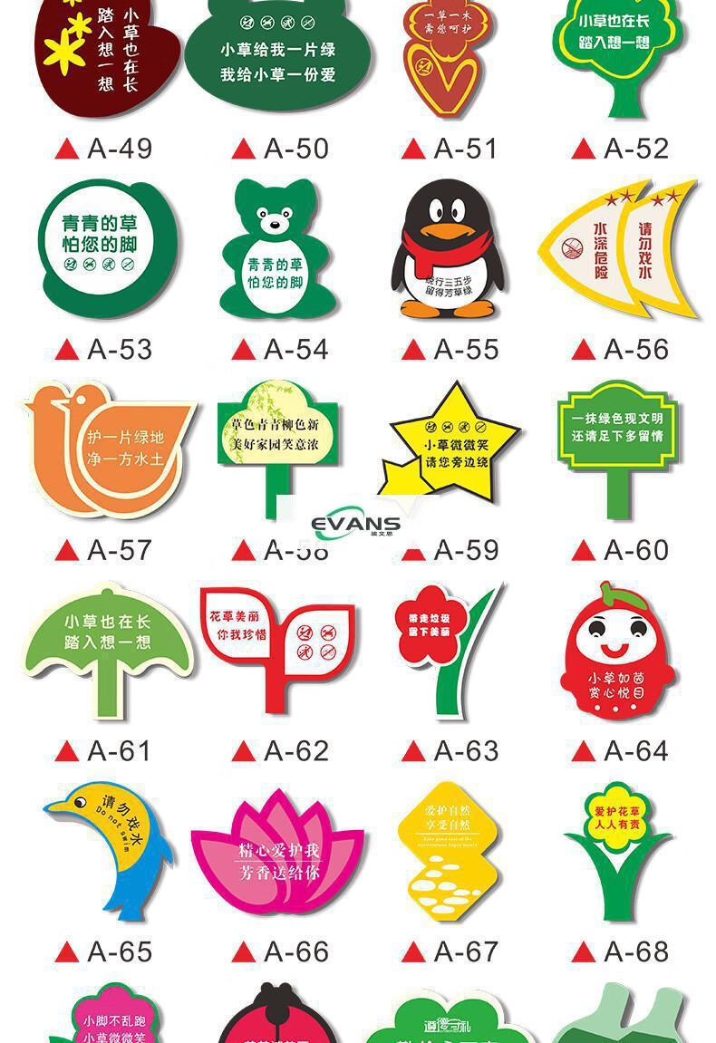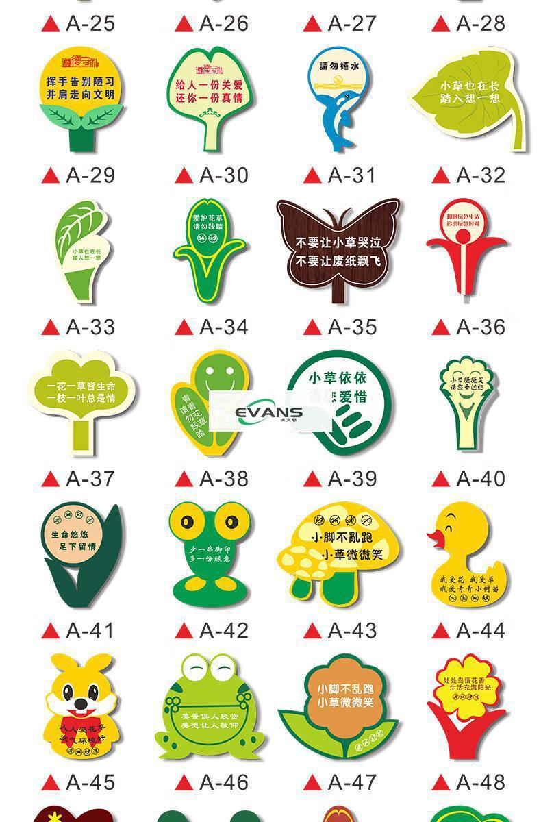 Cartoon green signboard care for small lawn prompts customized flower and grass slogans instructions outdoor garden tree warnings A-13 50x70cm