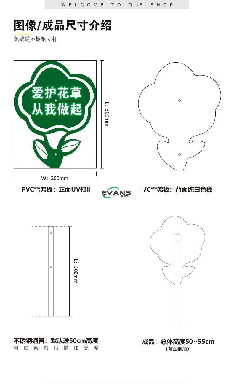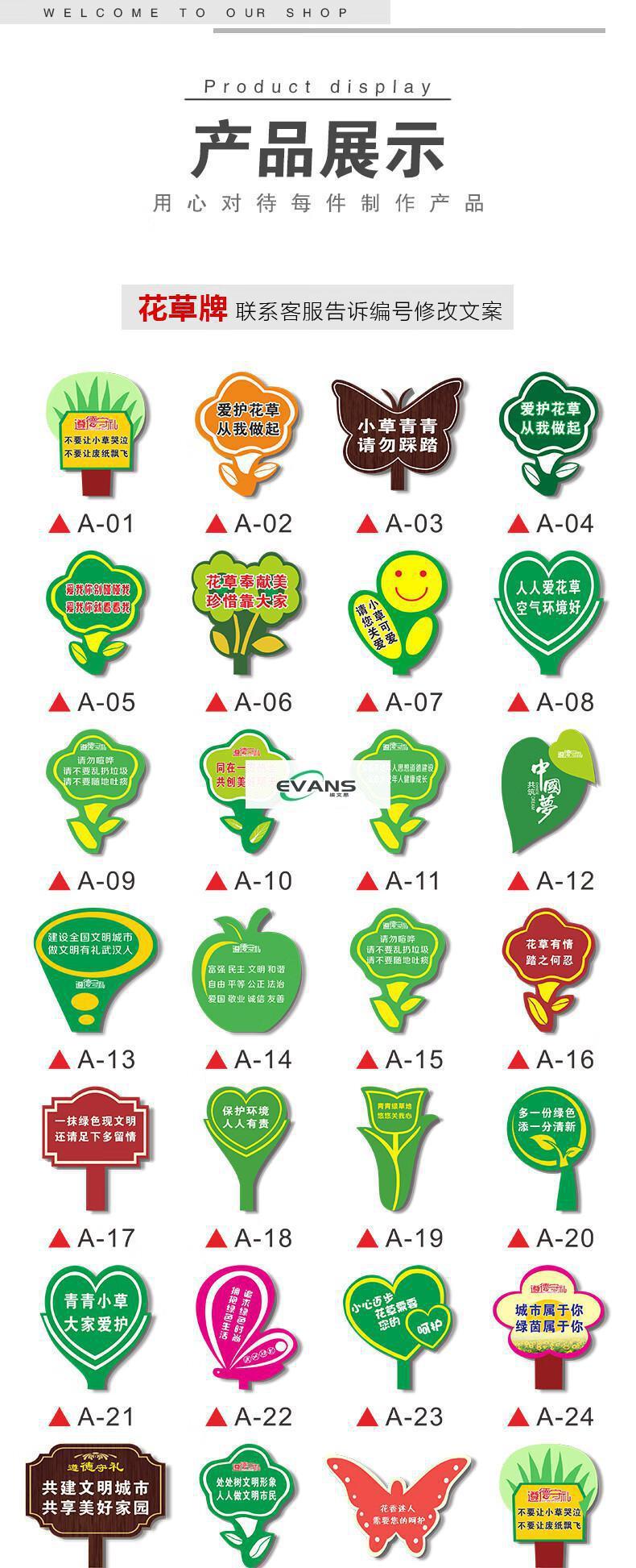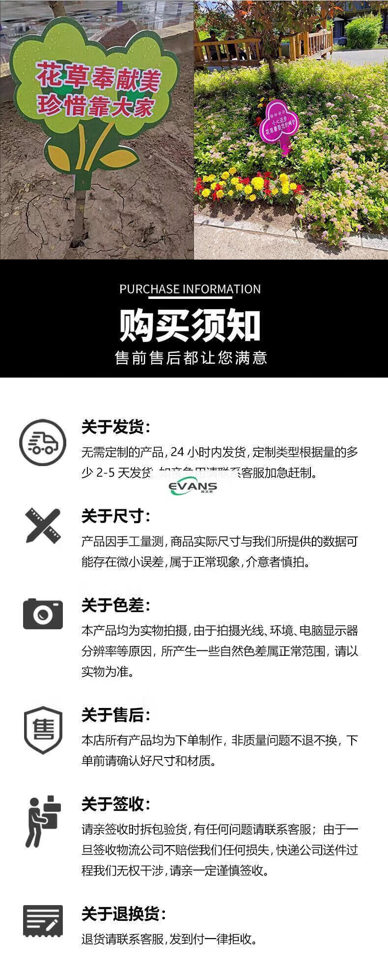 Cartoon green signboard care for small lawn prompts customized flower and grass slogans instructions outdoor garden tree warnings A-13 50x70cm