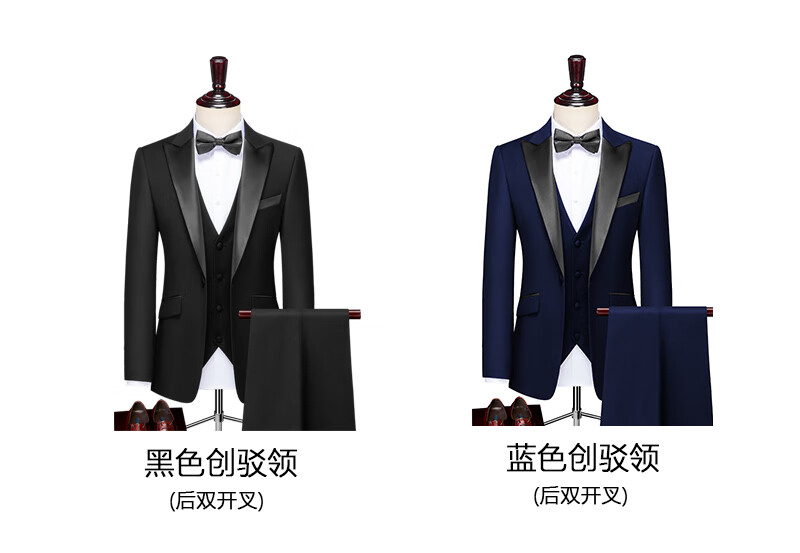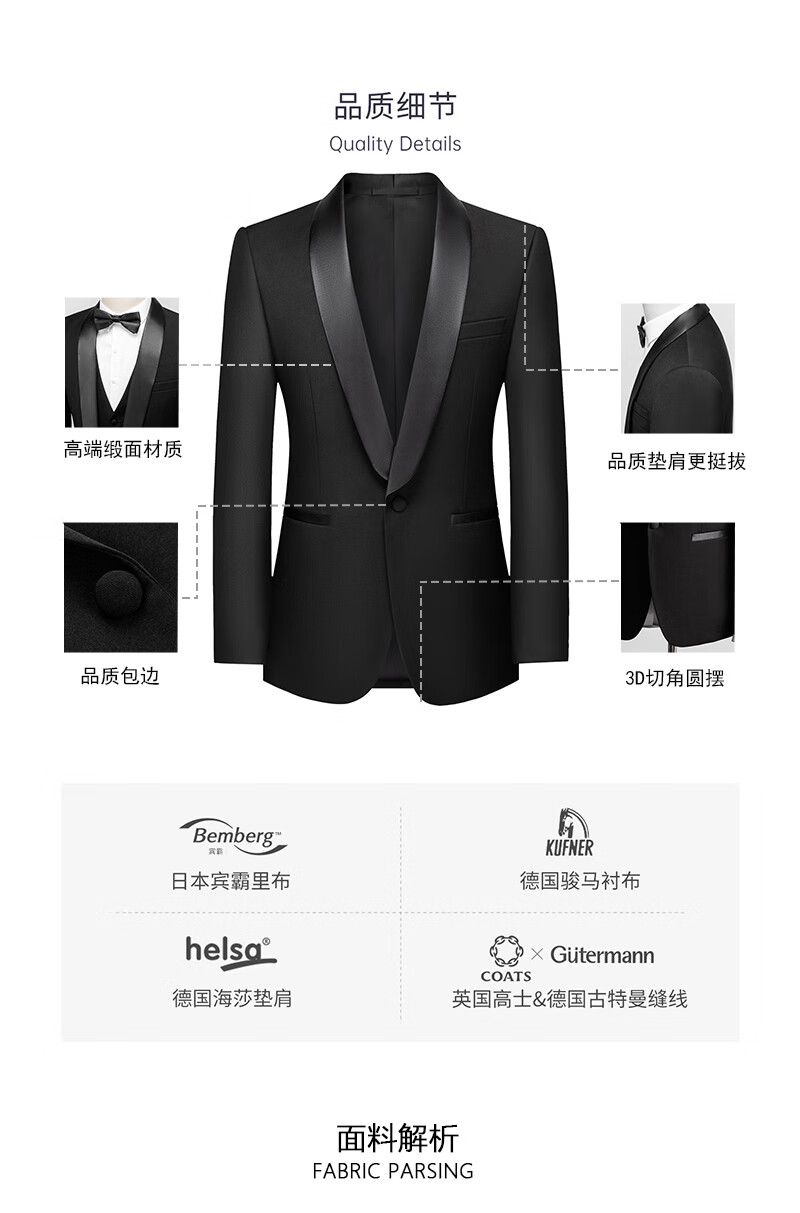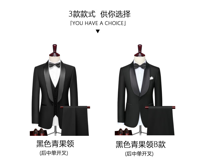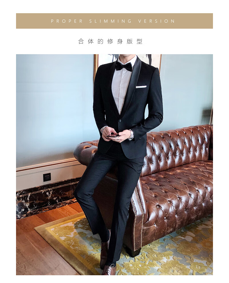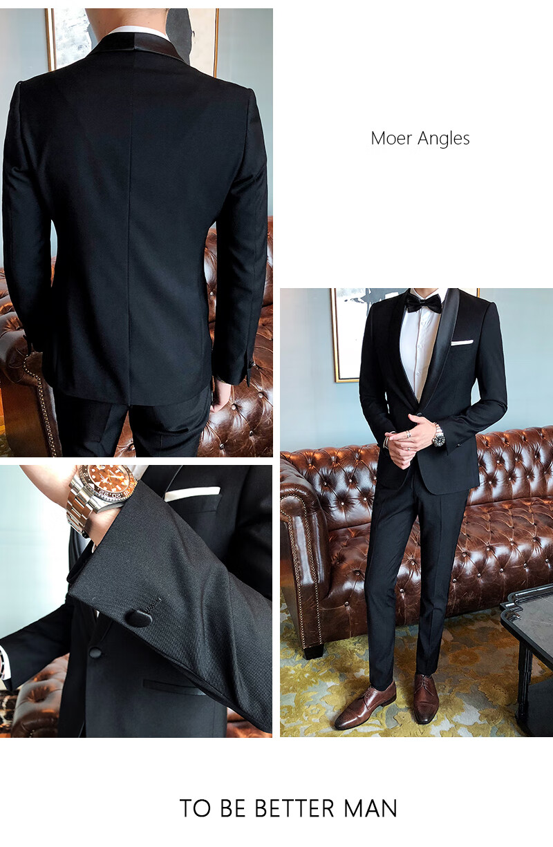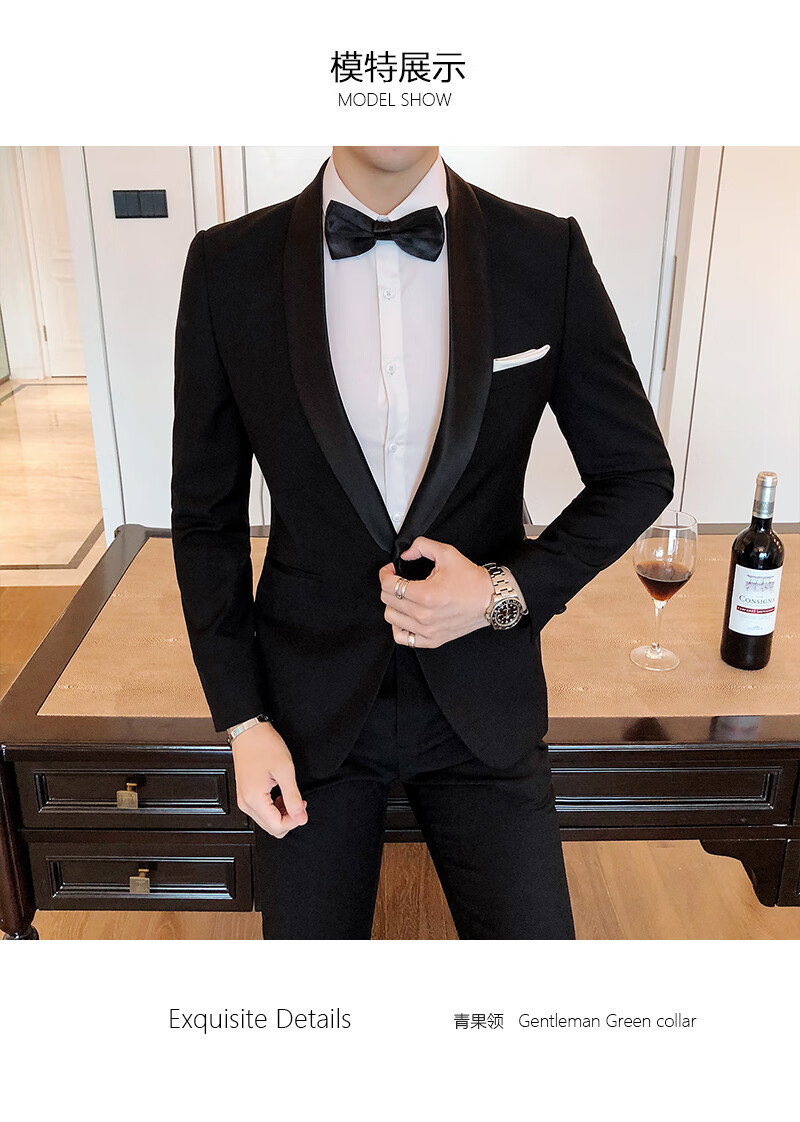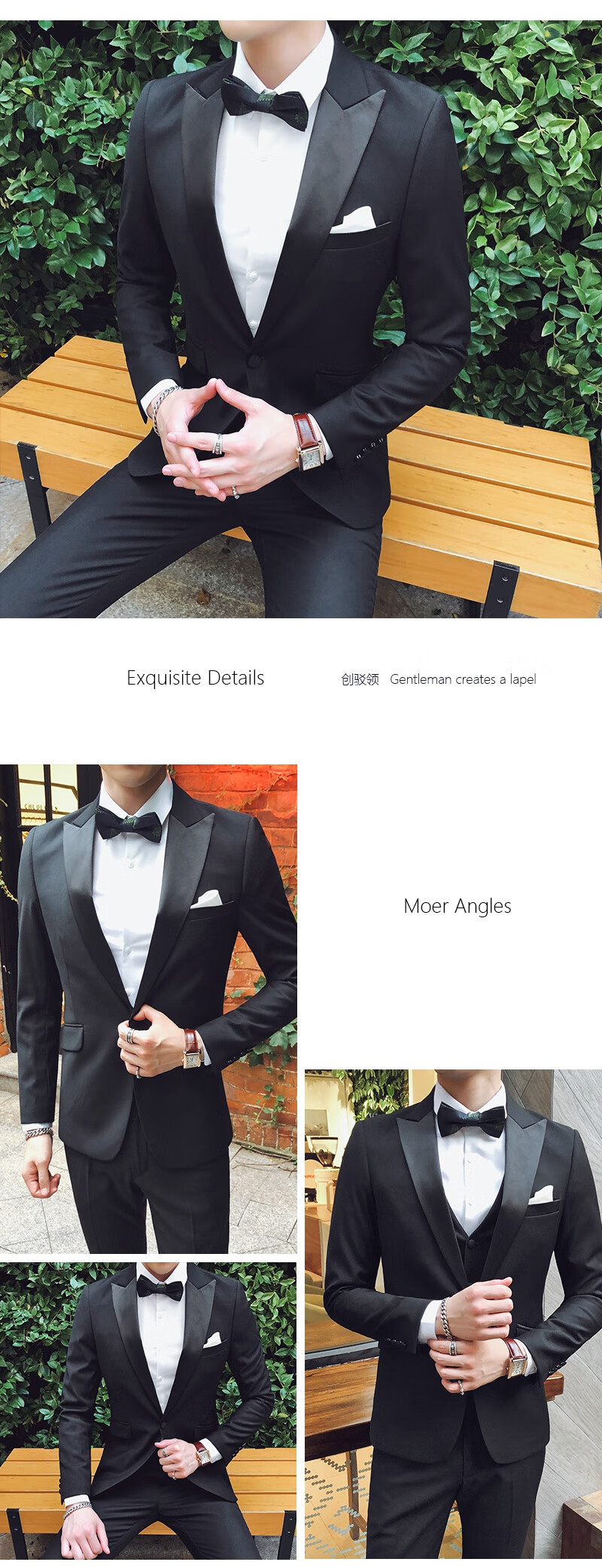 ROMON Art Exam Suit Men's Vocal Graduation Suit Men's Korean Slim Suit Men's Chorus Performance Clothes Black Lapel Suit + Vest + Pants 5XL Size (195 Jin Jin is equal to 0.5 kg)