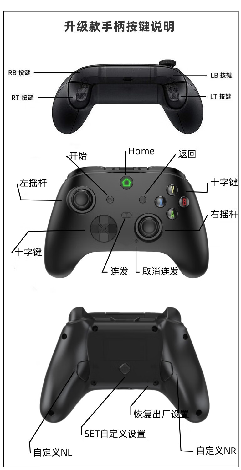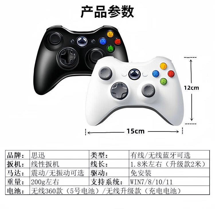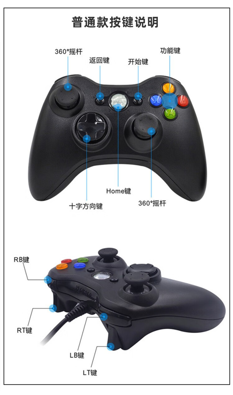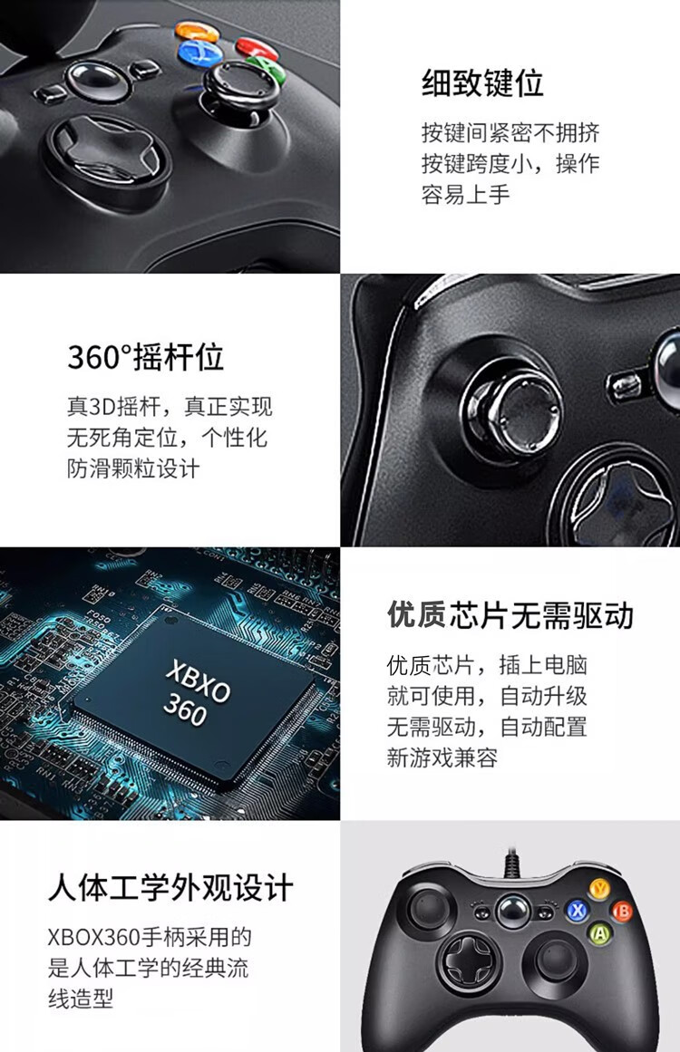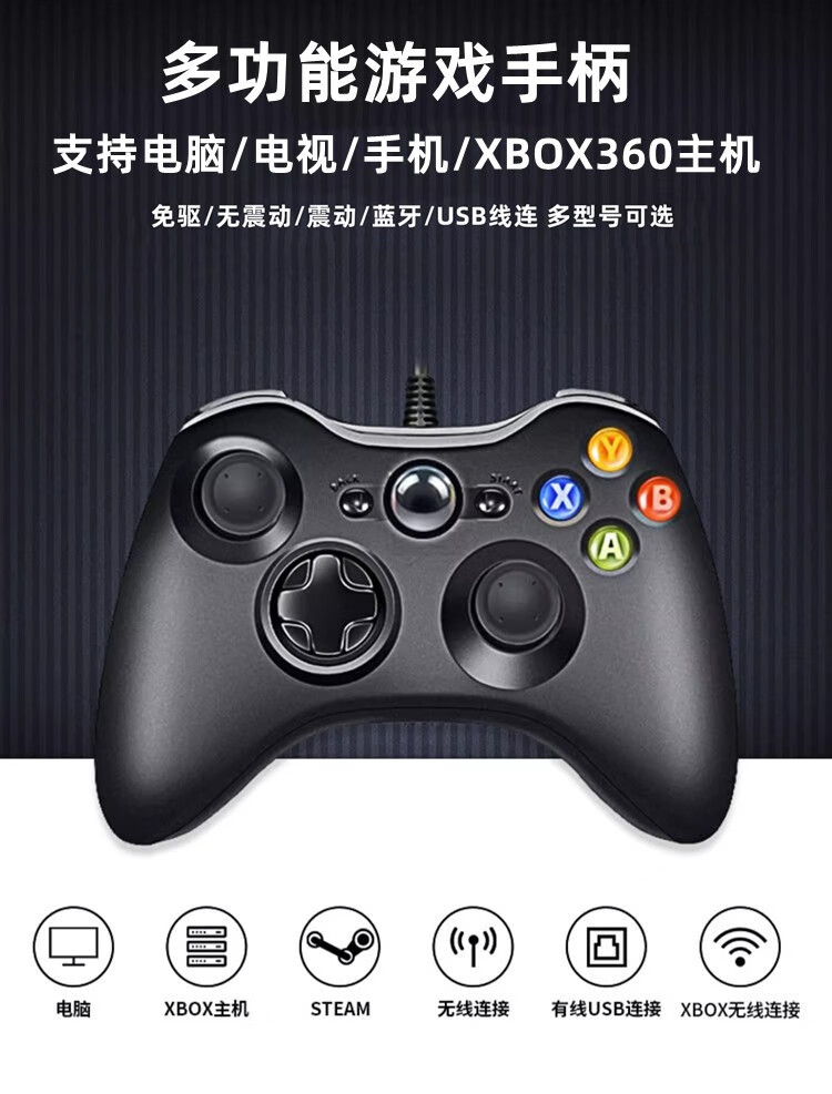 Game controller XBOX360 computer TV mobile phone tablet steam universal wired wireless Bluetooth driver-free controller black * no vibration wired (computer/TV) bare metal