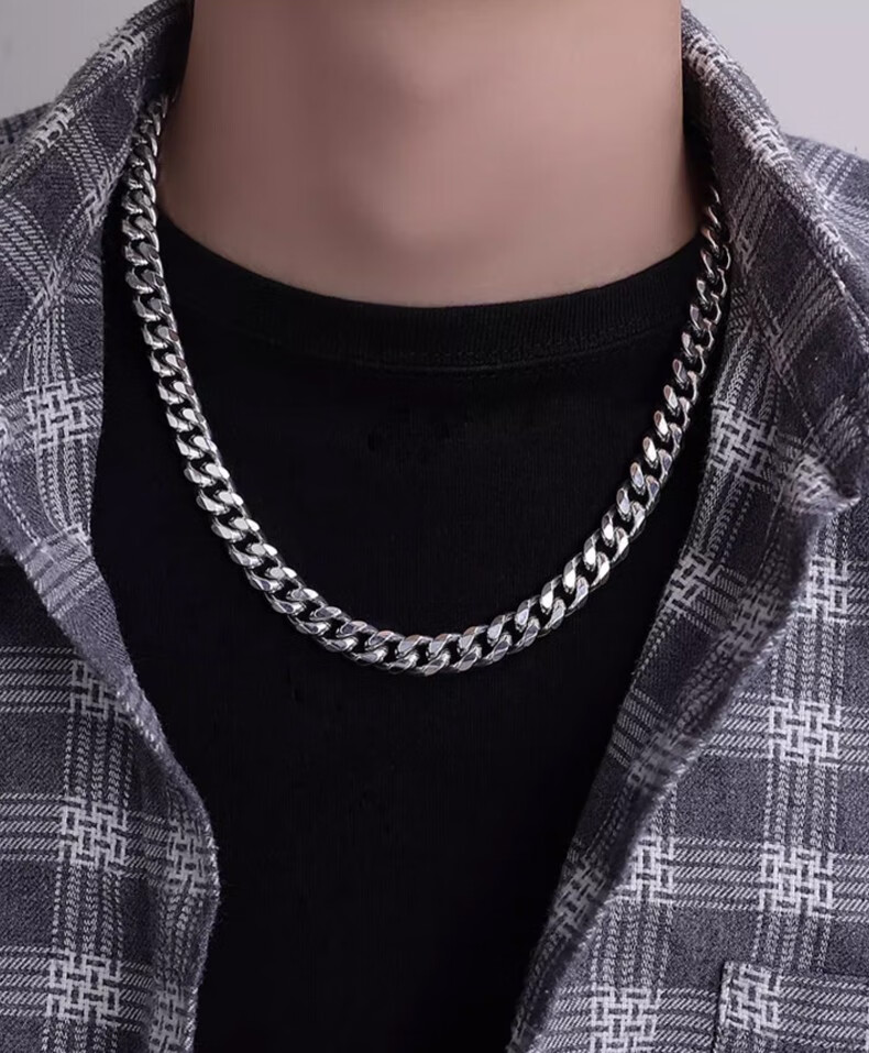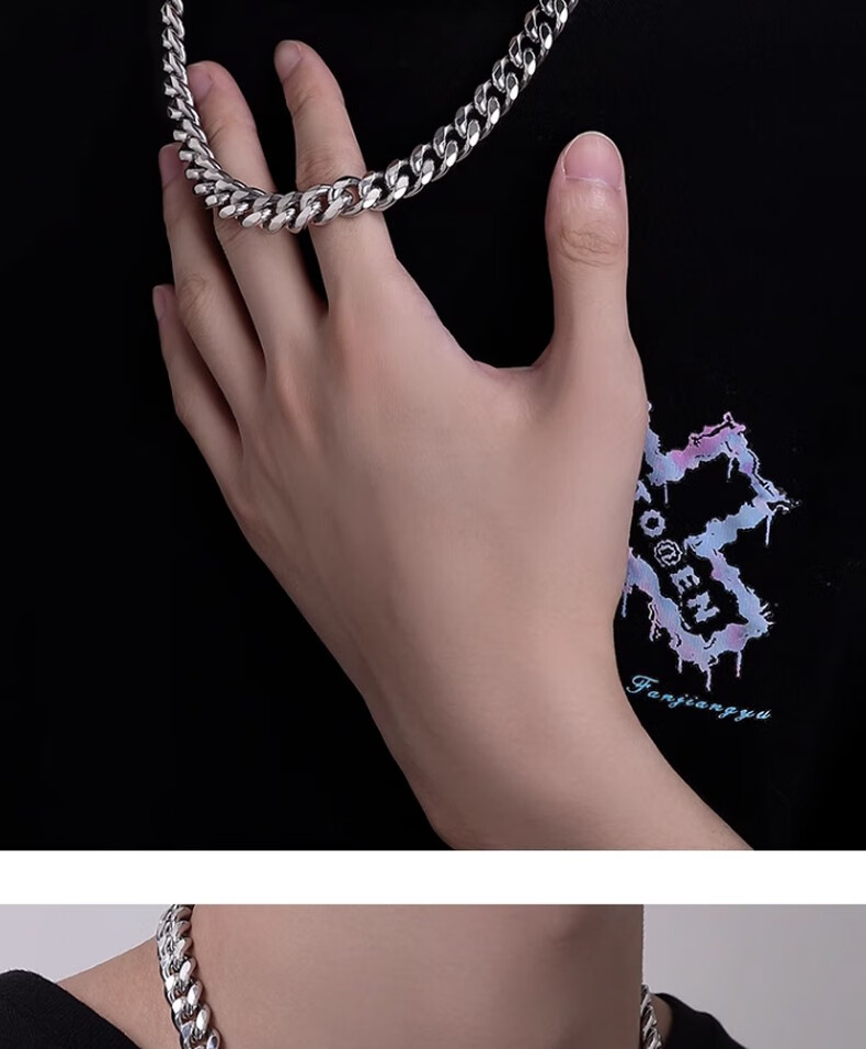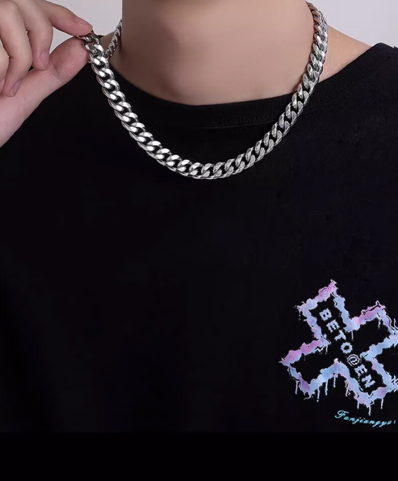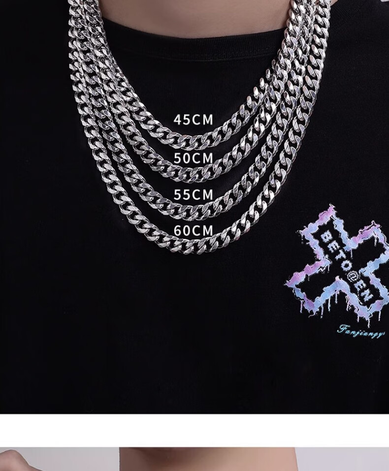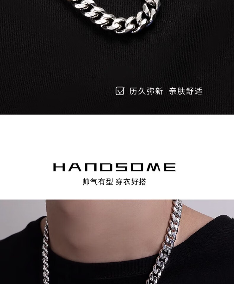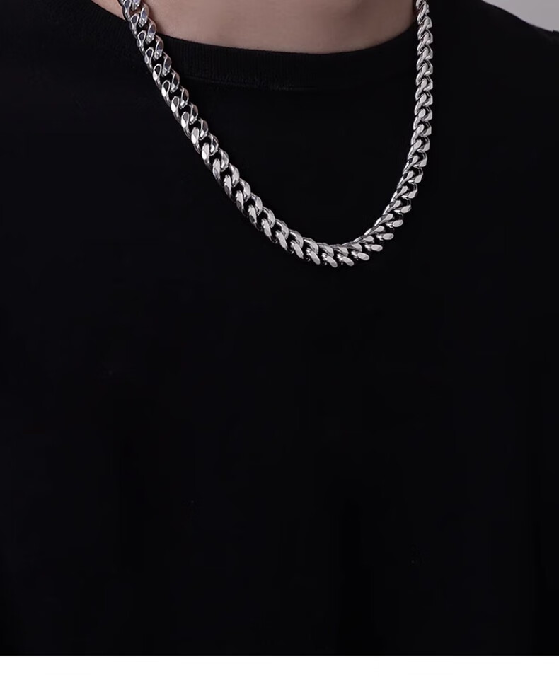 Mansheng Cuban necklace men's thick style trendy brand versatile high-end titanium steel necklace American fitness boys' clavicle chain accessories necklace
