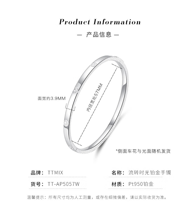 TTMIX platinum bracelet for women pt950 platinum smooth plain ring concubine bracelet birthday gift for wife 55mm weight 17.09g width 5.2mm