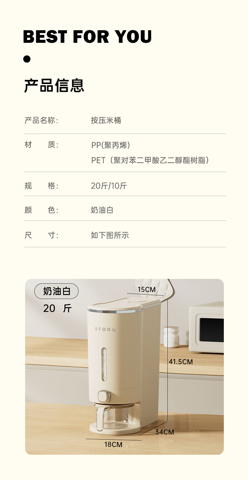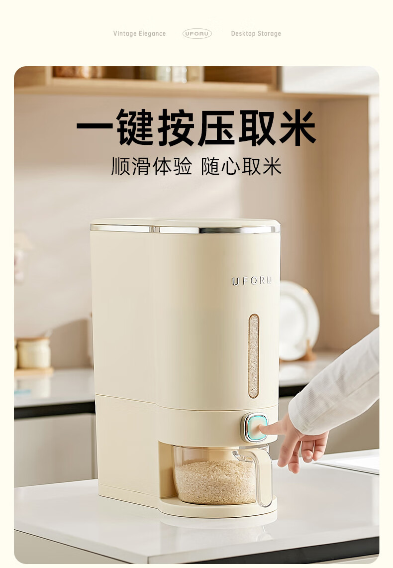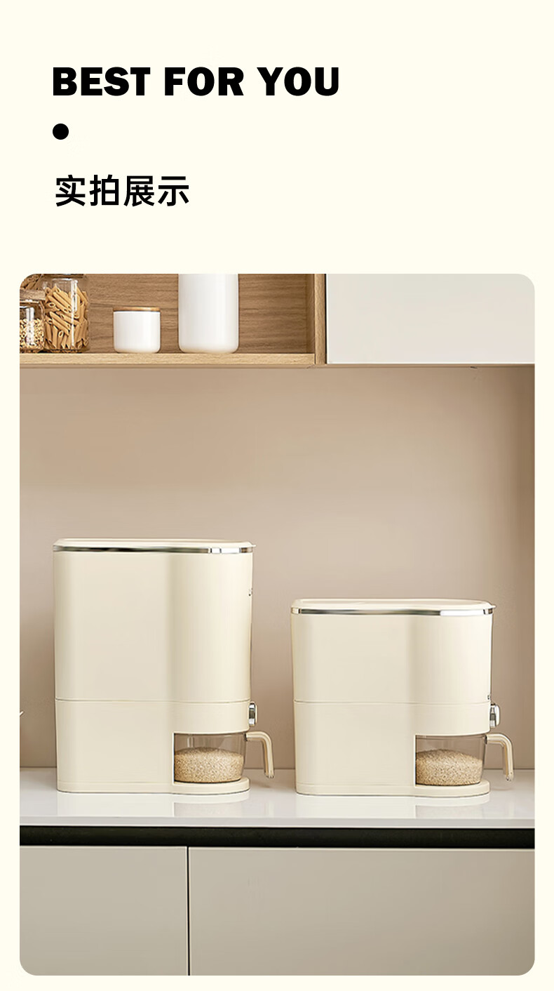 Cupboard star press rice bucket insect-proof and moisture-proof sealed household rice flour grains automatic rice storage box rice cylinder cream white 20Jin Jin equal to 0.5 kg press rice + measuring cup