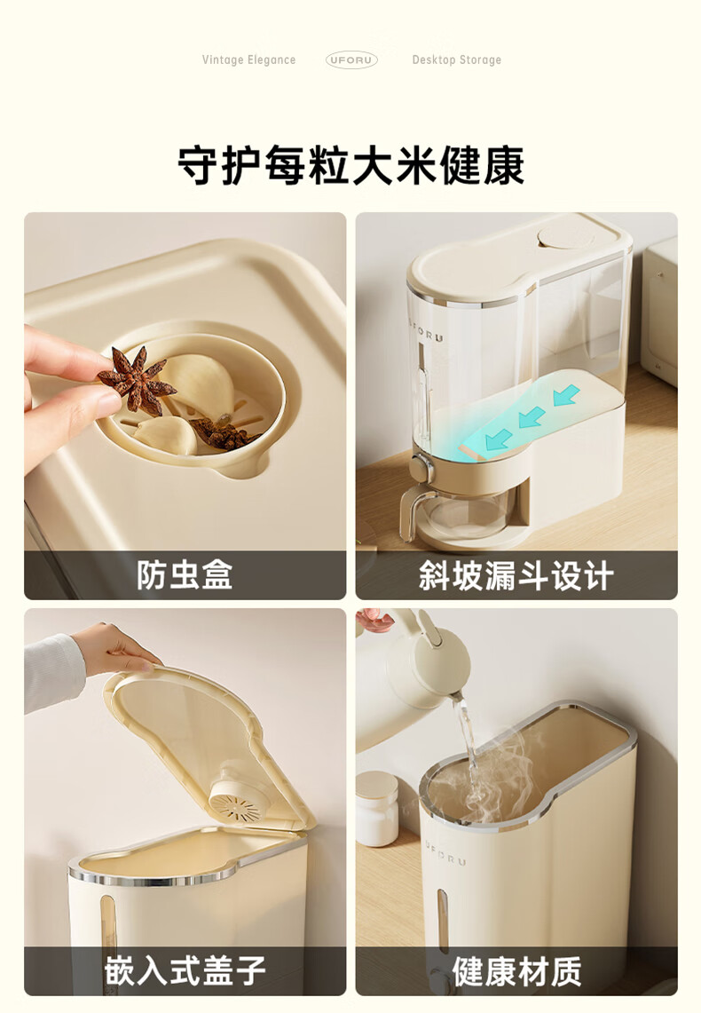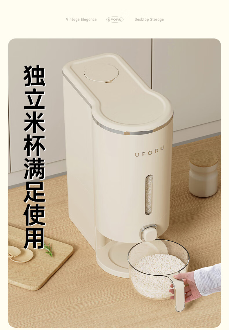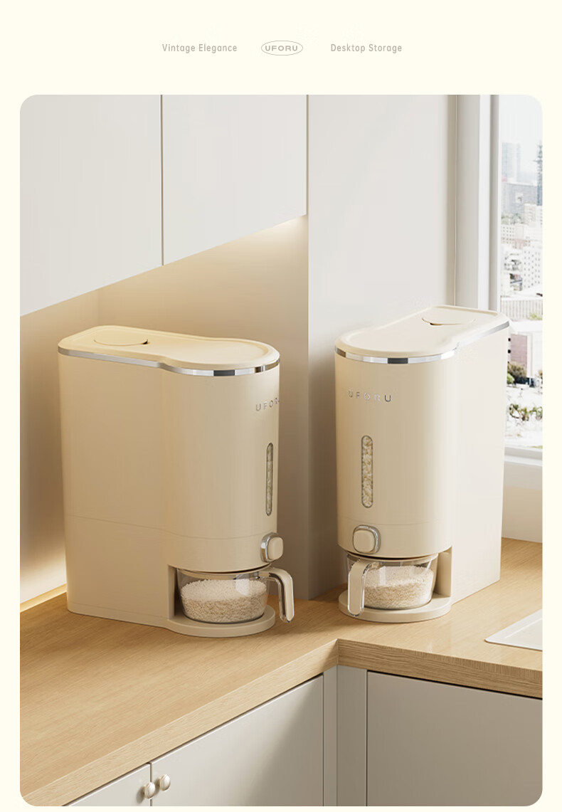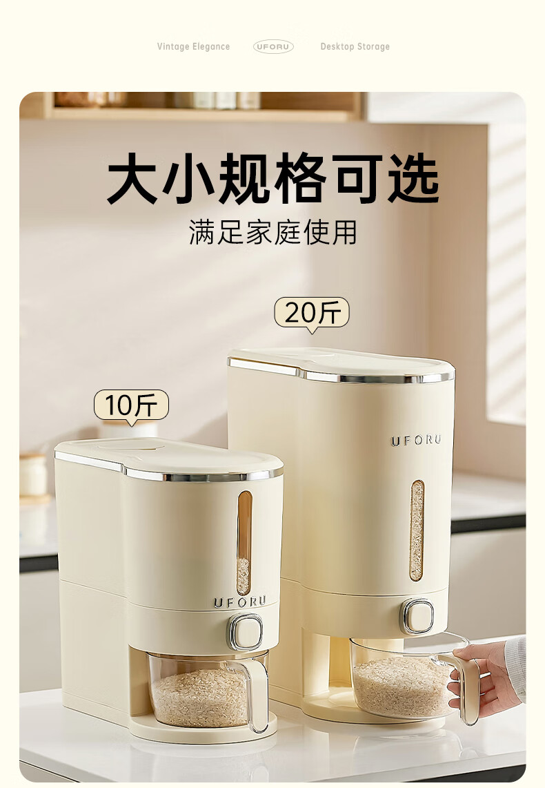 Cupboard star press rice bucket insect-proof and moisture-proof sealed household rice flour grains automatic rice storage box rice cylinder cream white 20Jin Jin equal to 0.5 kg press rice + measuring cup