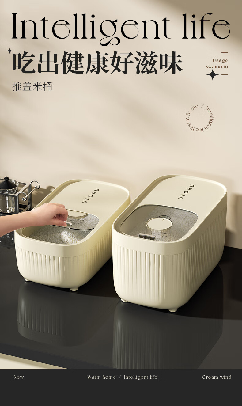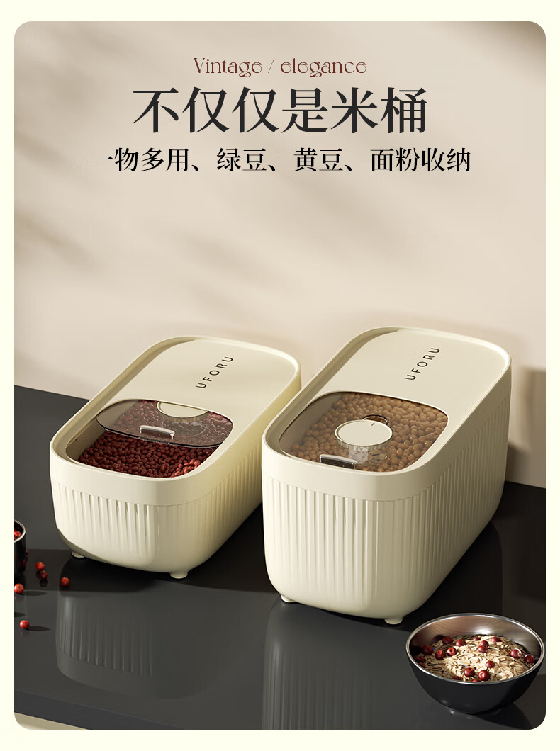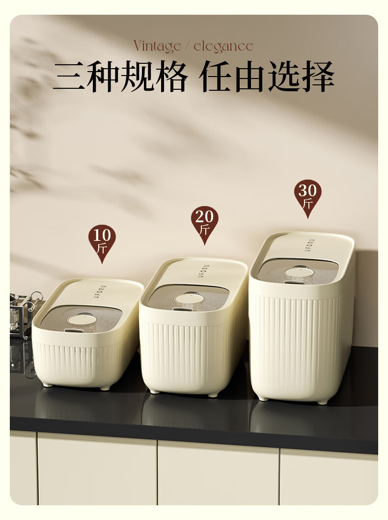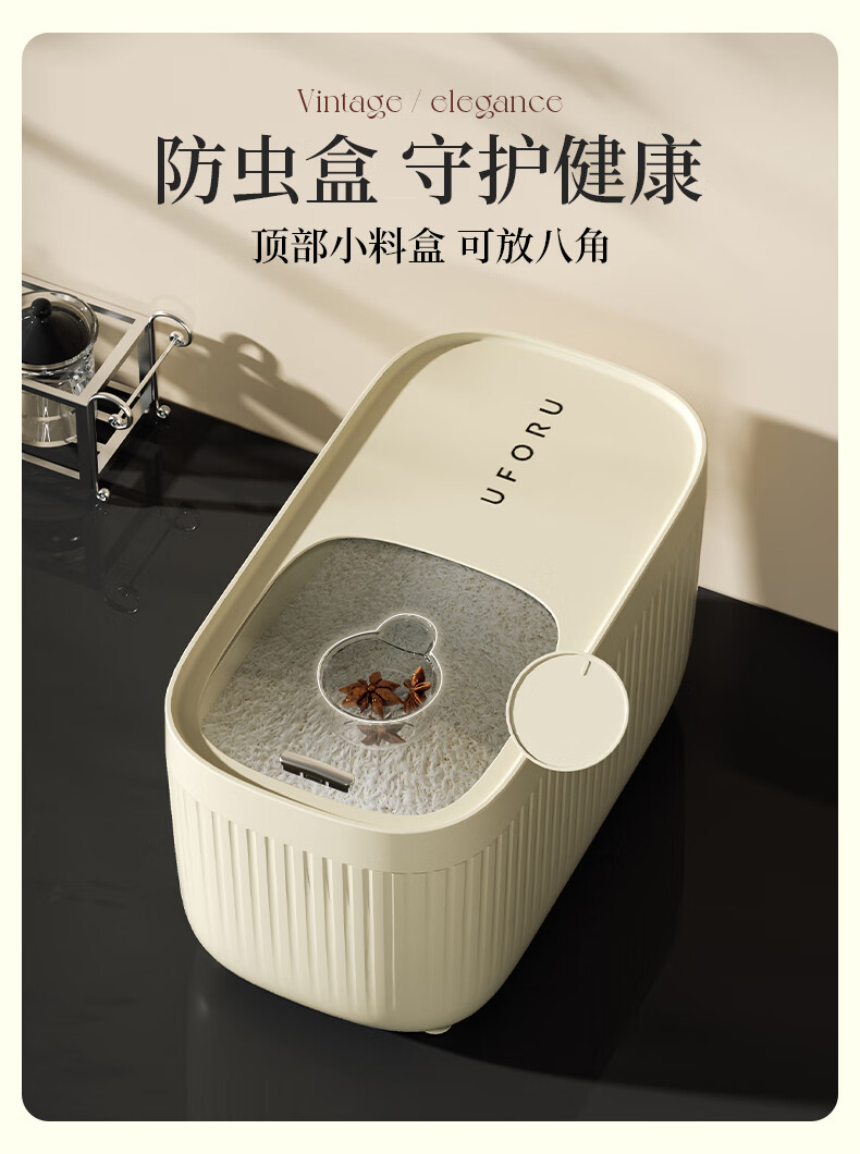 Cabinet star-packed rice bucket, insect-proof and moisture-proof, household food-grade sealed 30 Jin Jin equal to 0.5 kg. Rice box, rice cylinder, flour storage tank, rice storage box, cream white 20 Jin Jin equal to 0.5 kg (comes with measuring cup)